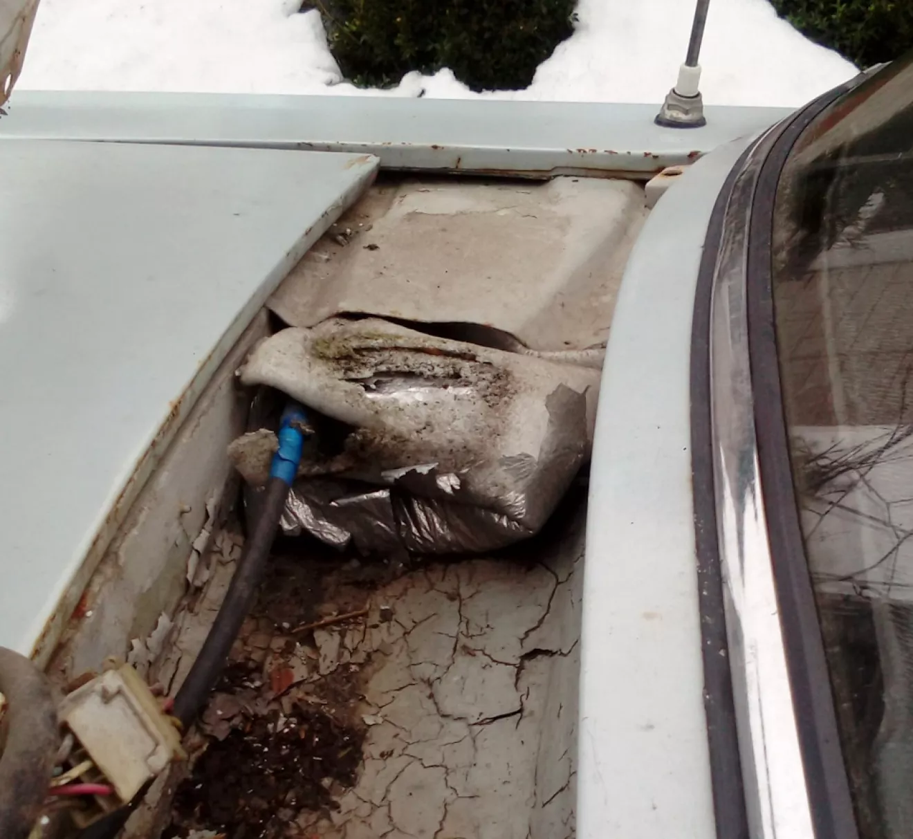 Из воздуховодов дул теперь явно теплый, почти горячий воздух, но вот его количество было явно недостаточно. Тут я вспомнил, что через решетку панели дворников виднелся подозрительный кусок утеплителя.