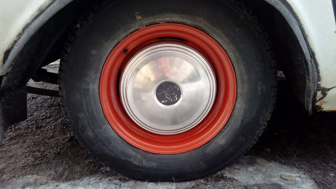На радостях, я поехал на шиномонтаж и переобул задние покрышки на свежеокрашенные диски 5,5 дюйма с креплением под колпак, взамен обшарпанных пятидюймовых.
