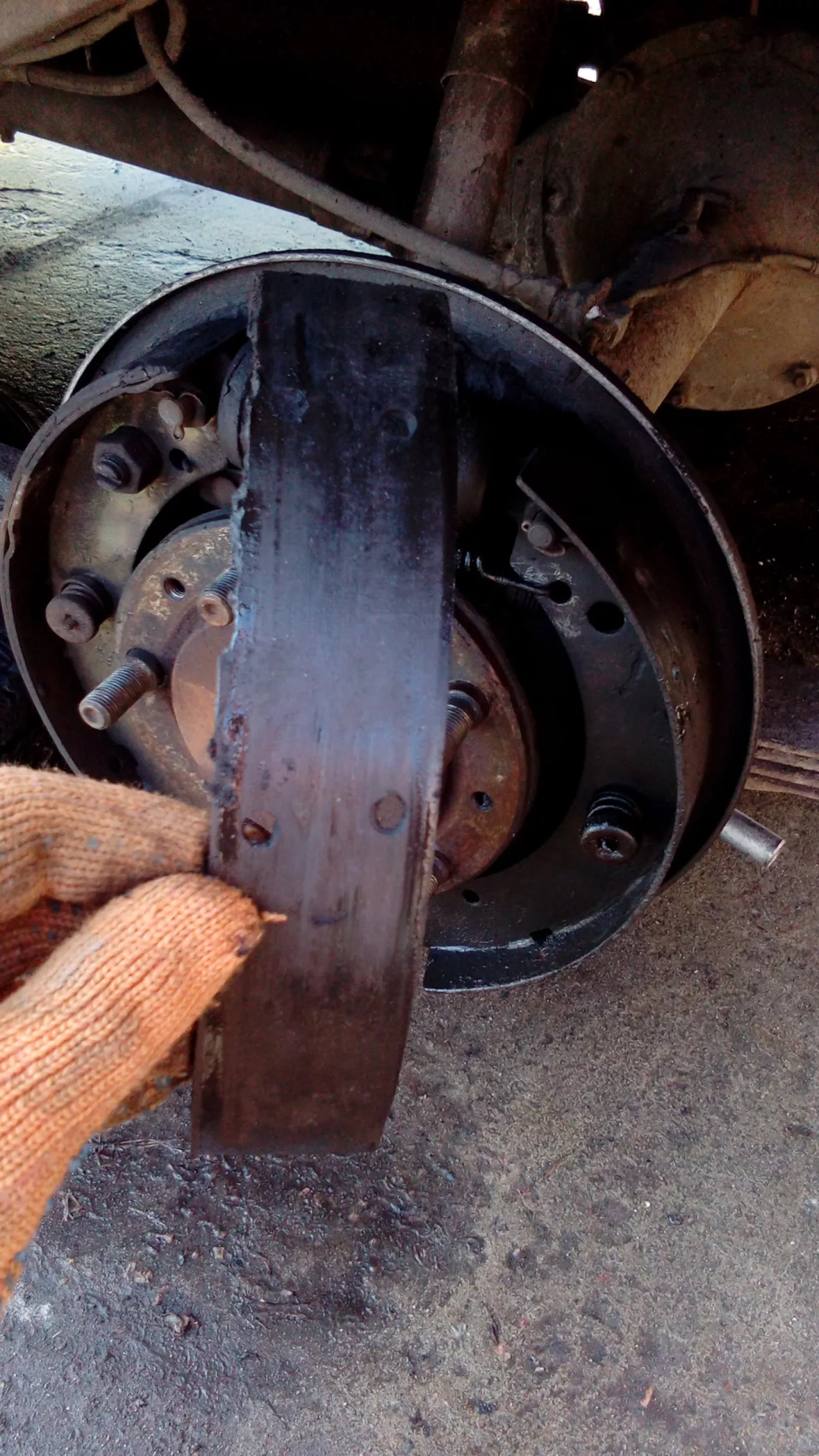 Провалилась педаль тормоза. Оказалось, что сорвало накладку и провернуло. Выдавило поршенек и привет.