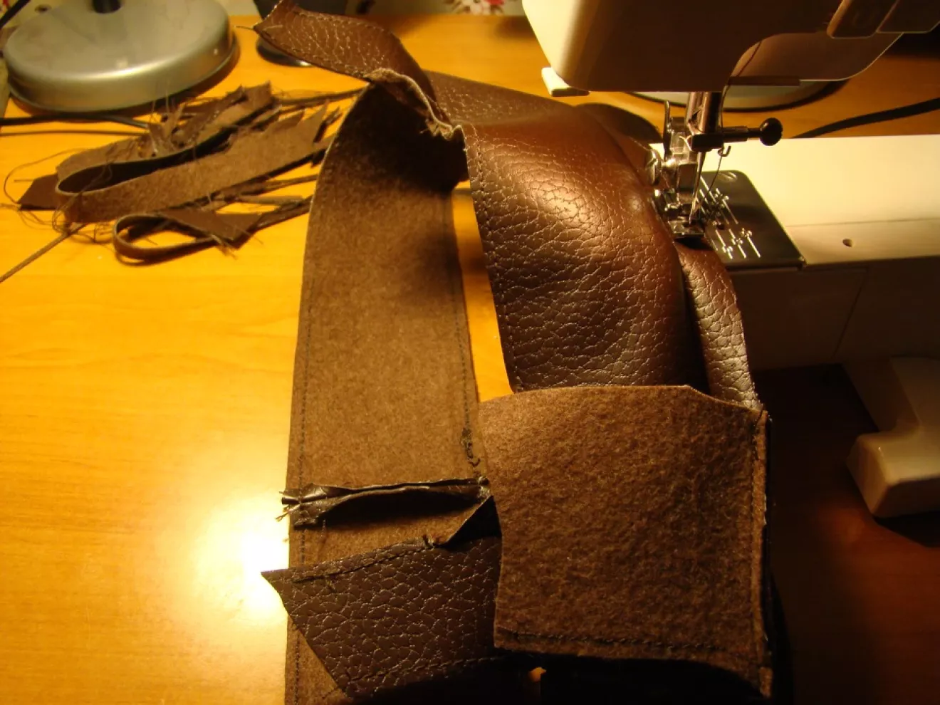 Теперь о косяках: надеялся что кожзам при стяжке потянется, поэтому выкройку сделал немного в минус, что бы шов стянуло в стык — нихрена. кожзам не потянулся.
