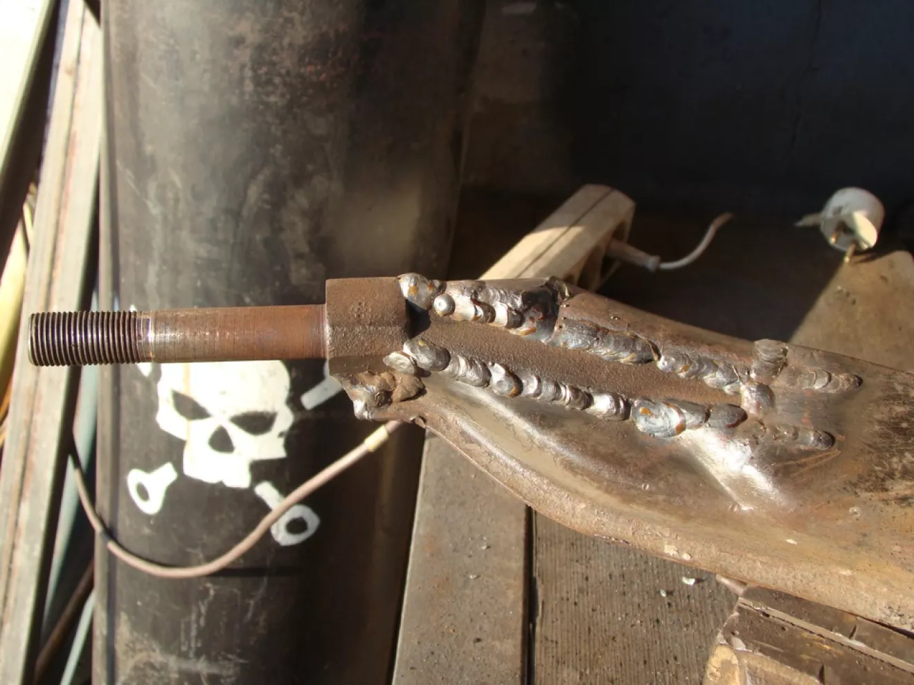 После этого, снял и обварил обойму, добавил ребер жесткости, покрасил и впрессовал резинку. Поставил на машину, опустил машину с домкрата и затянул передний и задний сайлентблоки. Утром отрегулировал схождение с помощью раздвижной самодельной линейки и перешел к испытаниям.