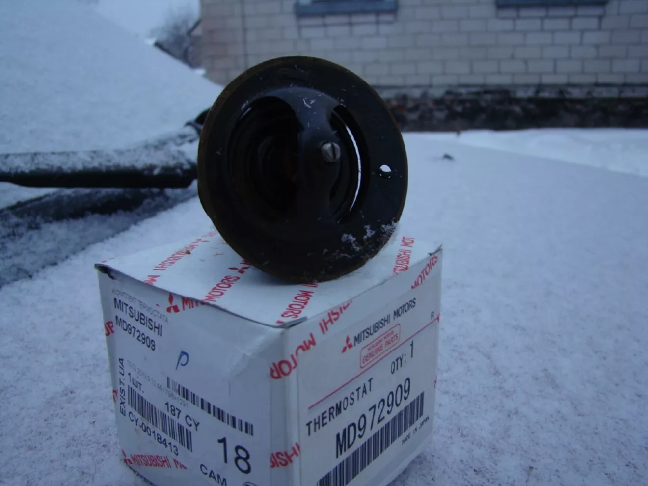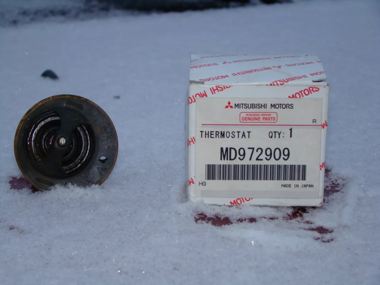 На екзисте заказал оригинальный термостат. Пока его везли — ездил с прикрытым радиатором. В пятницу термостатъ приехал, и в субботу я его поменял. Работы получилось аж на 10 мин. Это с учетом времени, потраченного на удаление остатков старой прикипевшей прокладки. Как я и предполагал, старый термостат холодный был уже немного приоткрытым. После замены термостата все проблемы с недогревом и печкой пропали.