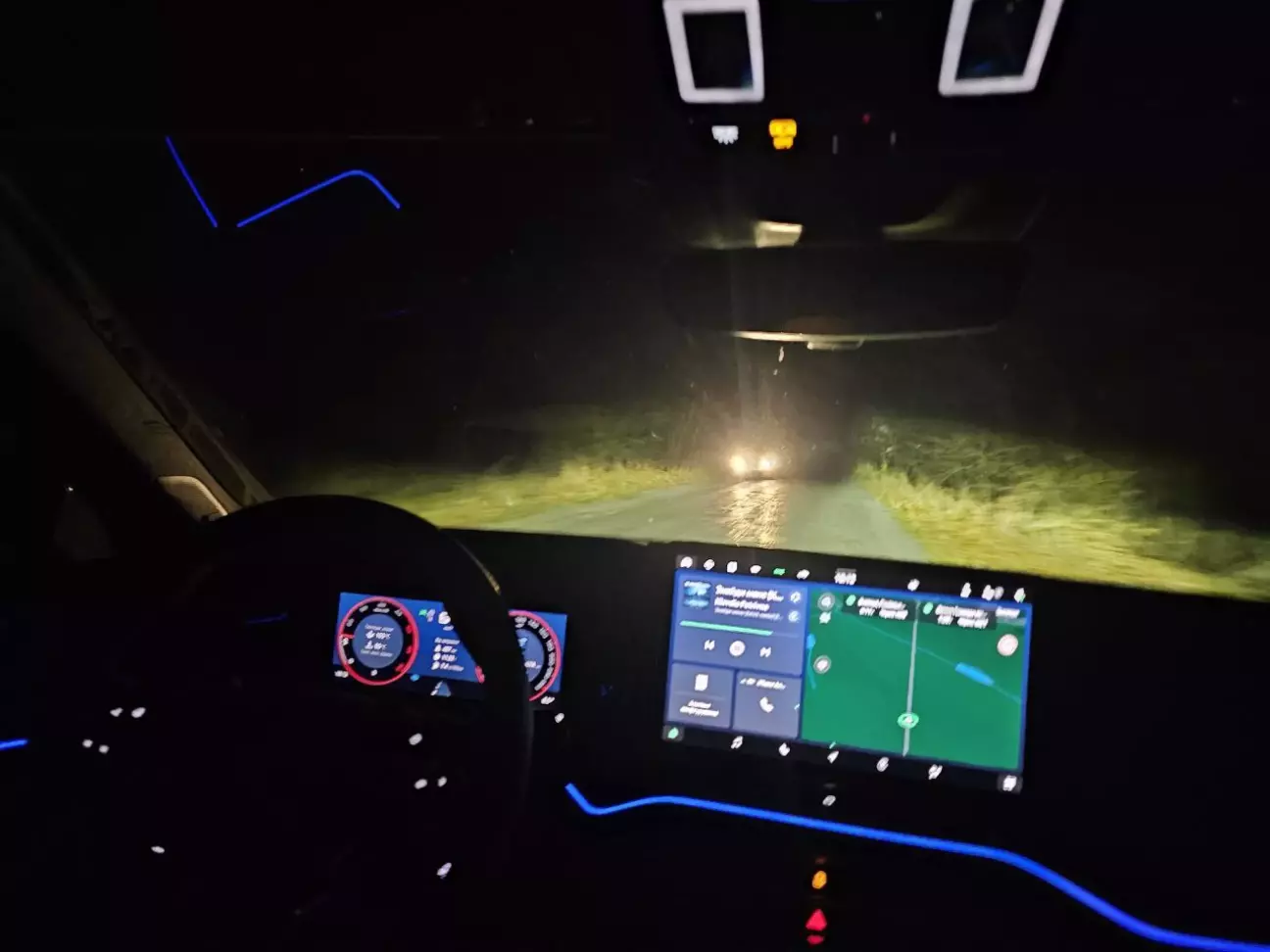 Поїздка була більш менш достатня,щоб отримати враження позитивні і не дуже:(,тому все по черзі.Почав на ходу пробувати більшість функцій керування,обкатка,тому більше 130,або 2000 обертів старався не навалювати.Забіжу наперед,розхід середній вийшов 6.9,але сказали,що має ще впасти,тому побачим.Перше ,що сподобалось,2 слота безпровідної зарядки і безпровідний карплей,який раз чи два розривав чомусь звʼязок на пару сек з телефоном,але в іншому канєш топчик: не тормозить,працює в цілому адекватно,музика Canton теж нат бед,купа налаштувань,меню доволі зручне,але треба звикнути.Тому ,враховуючи,що такого раніше не мав,реагував я на ці плюшки,як неандерталець🤪.Налаштування на кермі теж все ергономічно і зрозуміло,трохи завумне керування двірниками,в тойоті якось простіше тіж самі функції,також спочатку довго шукав в меню ,де примусово вимкнути кондиціонер,так як окремої кнопки немає,особисто мені не зайшло.Дяка китайцям,завдяки тому,що вони почали комплектувати свої авто по максимуму,Європа теж розкошелилась на різні опції: автоматичні всілякі регулювання,підігріви всього,що тільки можна,режим автопарковки,камери 360,зручний перемикач передач на кермі,амбієнт підсвітки різних кольорів,який,як сказав мій знайомий, за 300гре можна на алі взяти(ага,у тракториста хіба що можна:)) і багато іншого.Не ржіть ,ну не було у мене такого раніше😁.Потім на пів дороги ми заїхали до друзів трохи замочити техпаспорт,настала ніч,я увімкнув матричне світло і от тепер по справжньому ох-л,це було кіно під назвою «нічна траса»,чітке вирізання зустрічки,попутки,жодного тормоза чи глюка,рухи діодів праворуч-ліворуч 🙆🏻♂️.Раніше часто їздив вночі,чесно кажучи ,не дуже любив цю справу,але з цього моменту стало ясно,що вночі можна їздити зовсім не напряжно і в кайф.