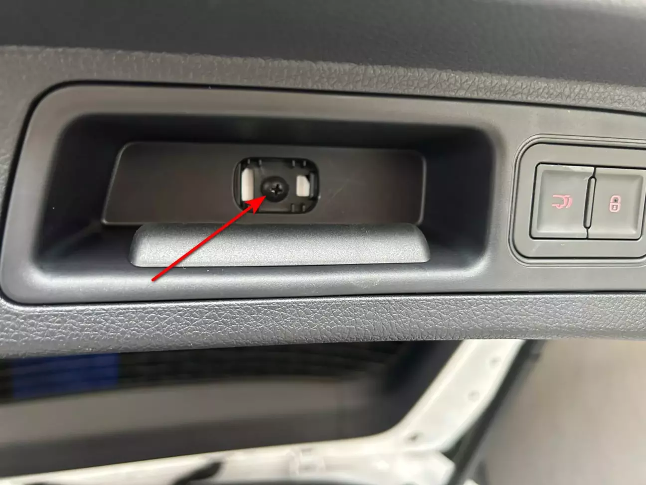 - зняти резинову накладку ручки двері (просто лежить, нічим не закріплена) і під нею перший болт, який тримає карту двері;