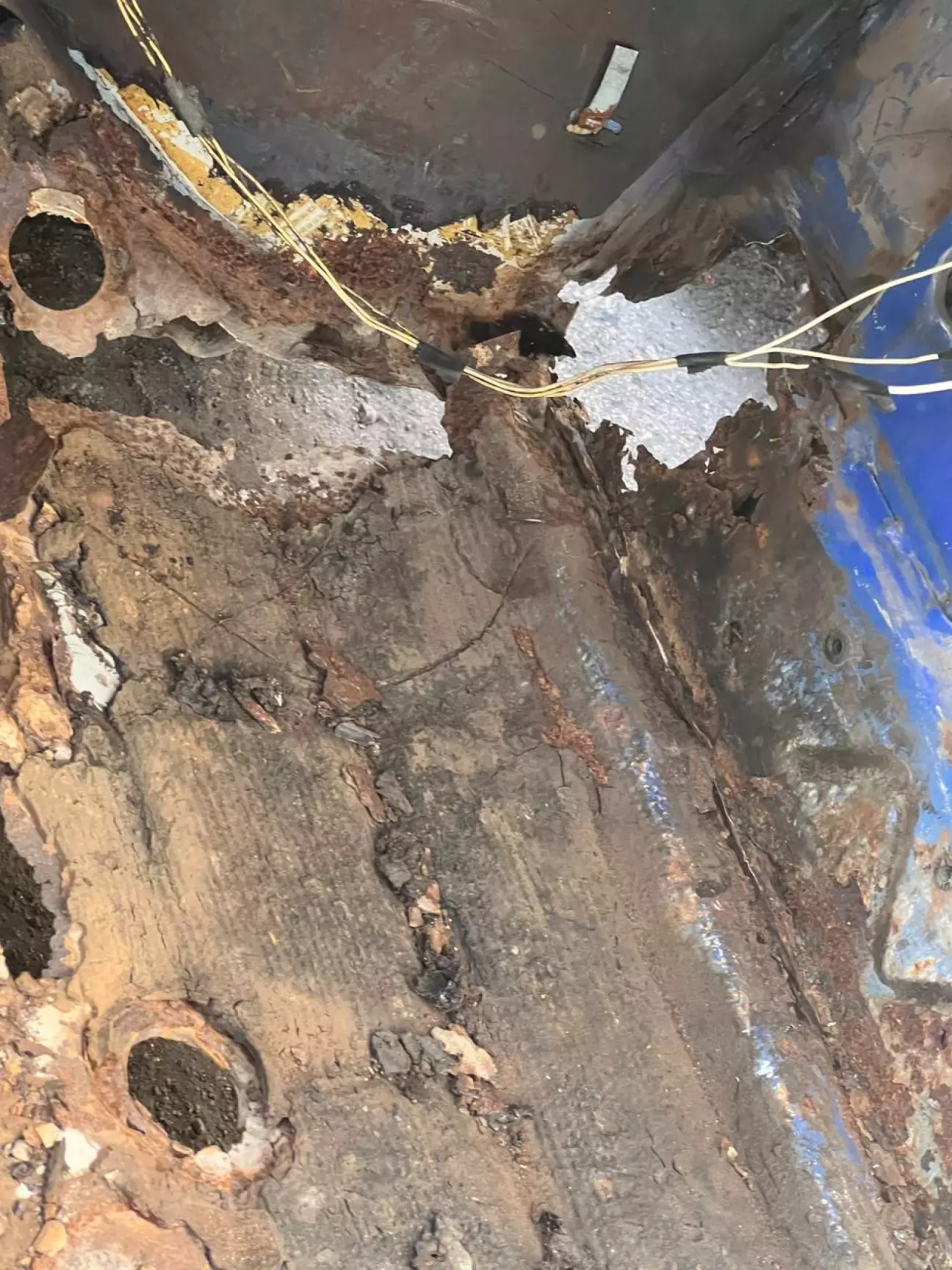 Те що машина вже згнила було зрозуміло вже давно, але щоб мати повне уявлення про стан середньої частини підлоги треба було зняти заводську віброізоляцію: