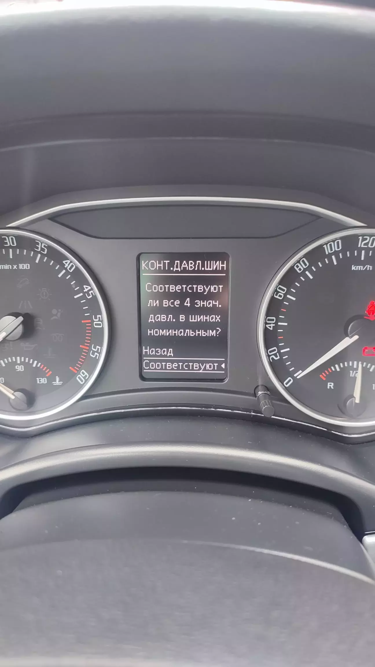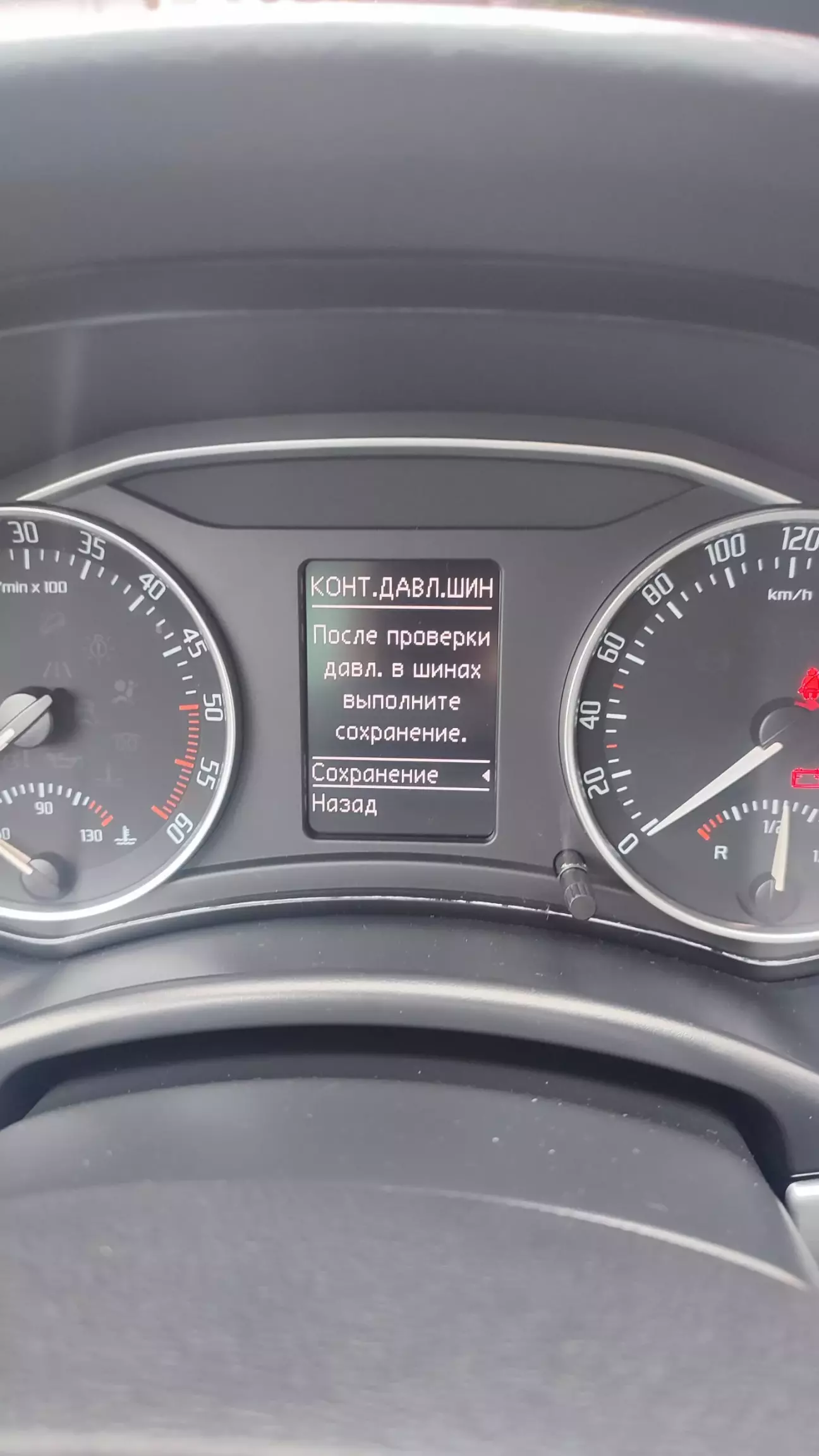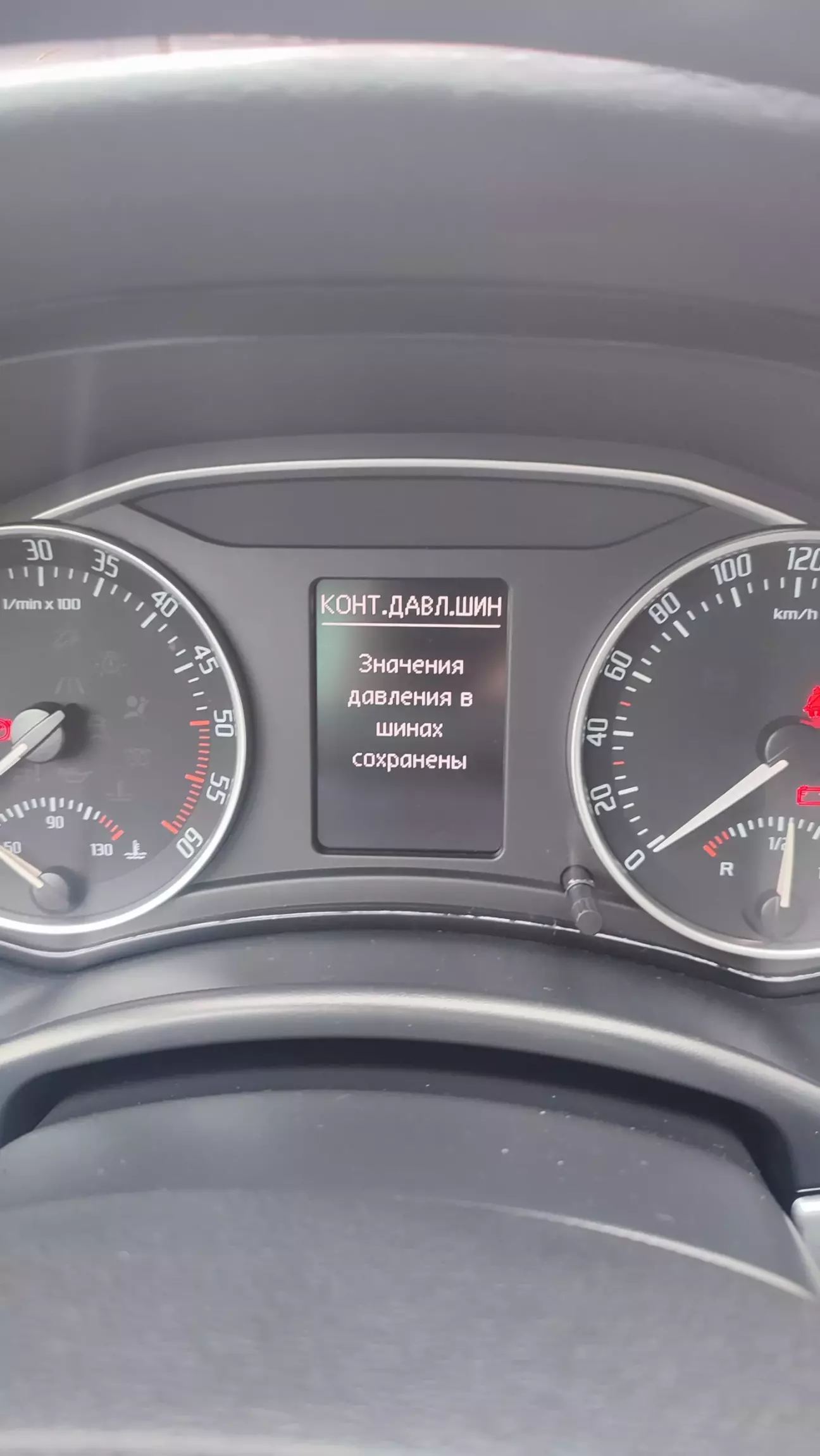 Воно трохи дивно, бо розмір літнішх шин і дисків одинакові, ну тільки виліт трошечки відрізняється. Теоретично не мало би відчуватися різниці. Колеса накачані так само як літні....але бортова система все одно ловить якусь різницю і викидує помилку по тиску в шинах. Так як я, не є щасливим власником кнопки, за допомогою якої скидається ця помилка