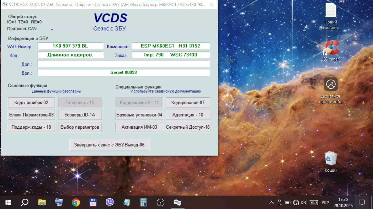 Тоді йдемо перевіреним шляхом. Підключаємо вцдс, заходимо в блок АБС