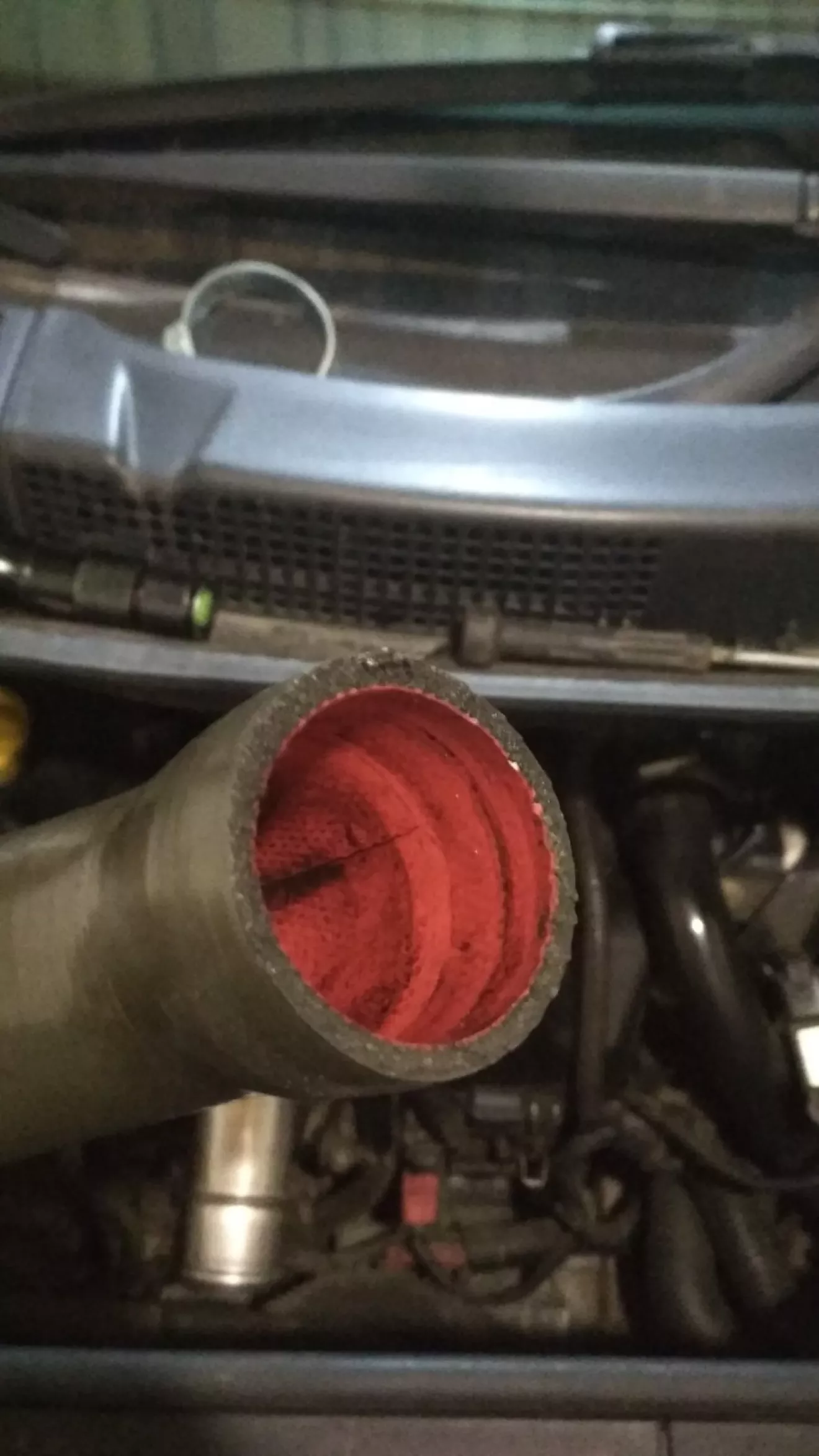 И вот на выходных снял бампер, интеркуллер. Да патрубок входной в куллер был уже дырявый (возле хомута, и посередине перетертый).