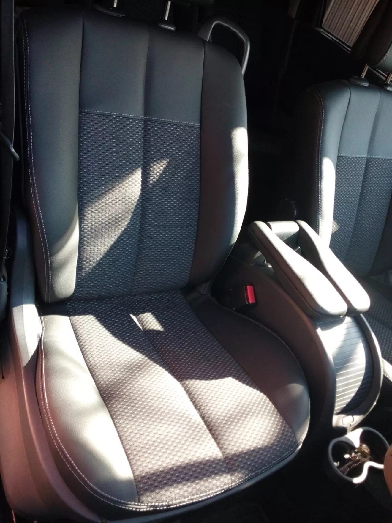 Решился на обновку. Сидушки салона обшили винилом с вставками ткани, подголовники винилом. Подлокотники винилом. Ещё хочу карты дверей, но попозже. Там много работы. Очень красиво смотрится.