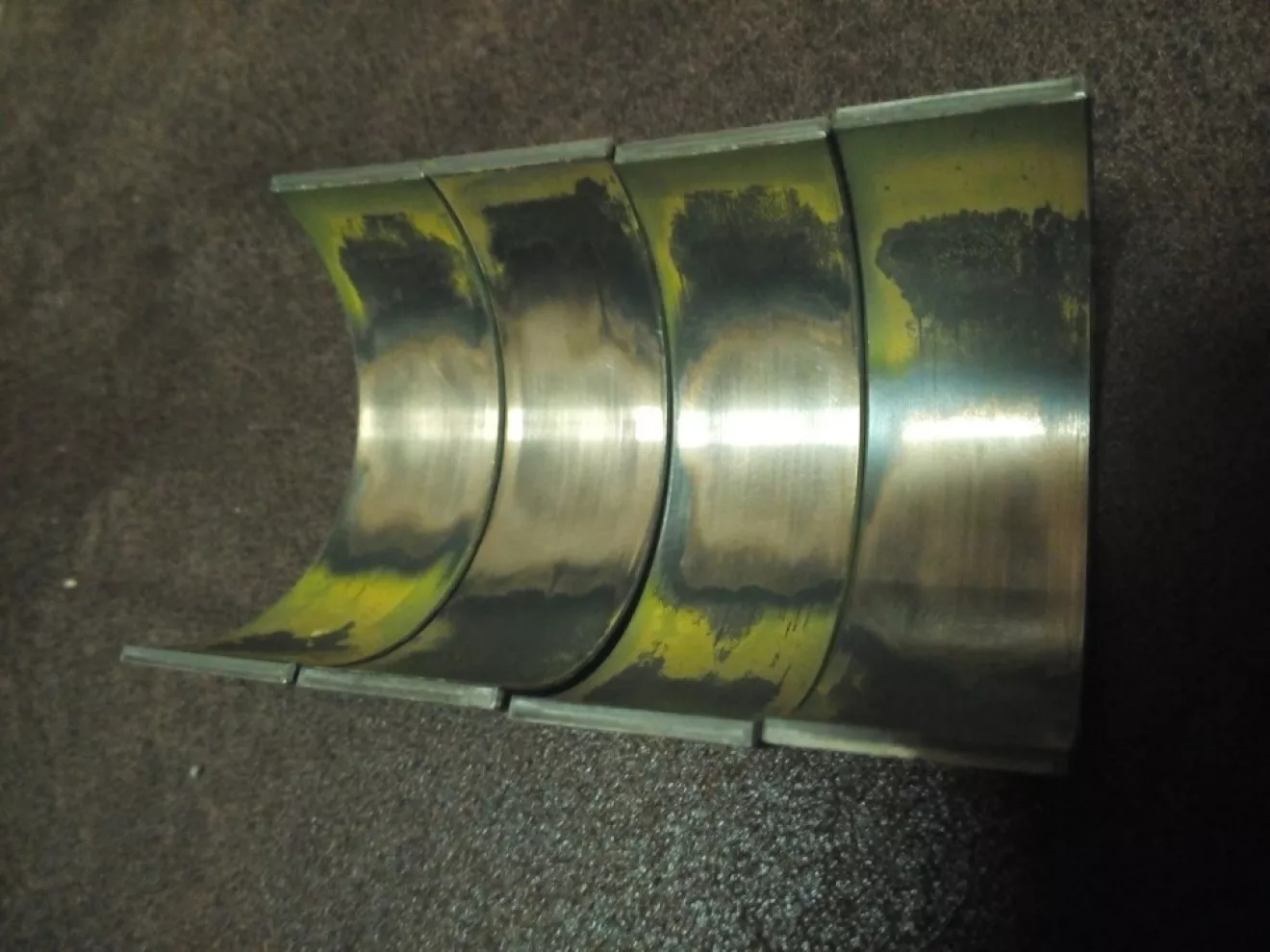 Пришло время замены вкладышей шатунных. Почитал форумы, и решился. Ну как сказать- вовремя коснулся. Судите сами по фото. «Жолтые» это верхние, они в нагрузке больше, чем нижние «белые». Коренные не меняли, они нормальные.