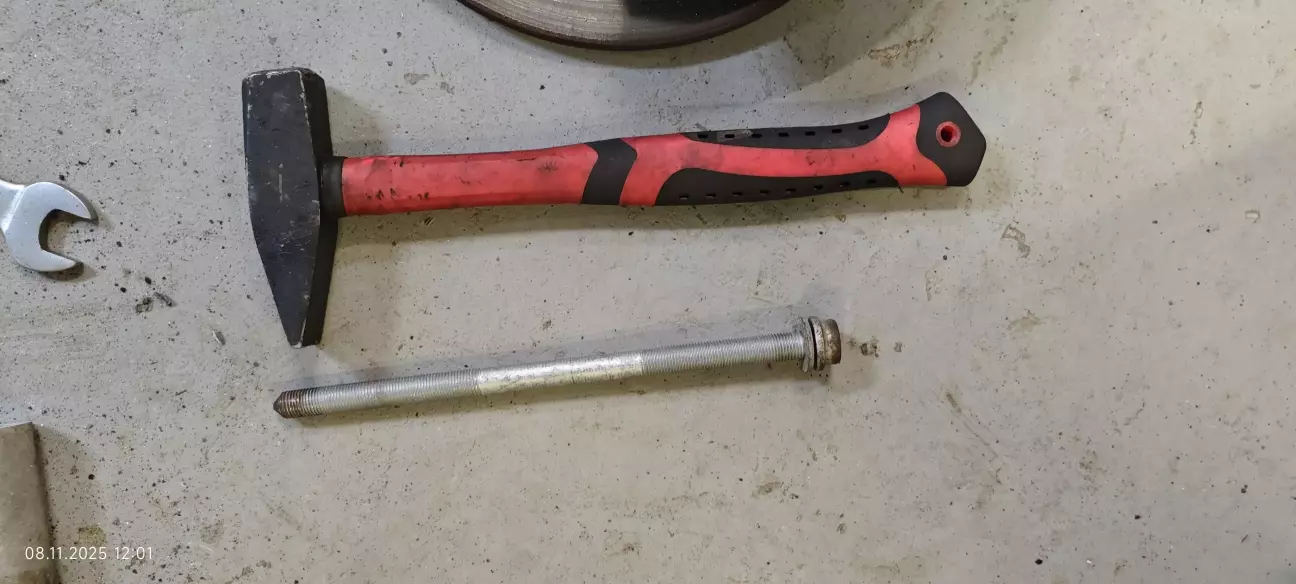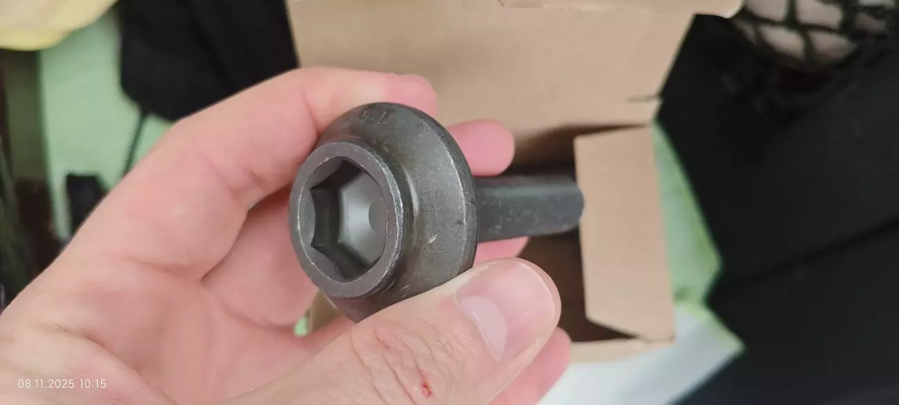 Договорившись с мастерами, которые первый раз проделывали работу по замене амортизаторов, еду на замену. Ступичные болты еле открутились, первый сорвали, а при отворачивания второго - сломался ключ. Я же, когда готовился к замене, купил головку-шестигранник Н19 и битку М16.