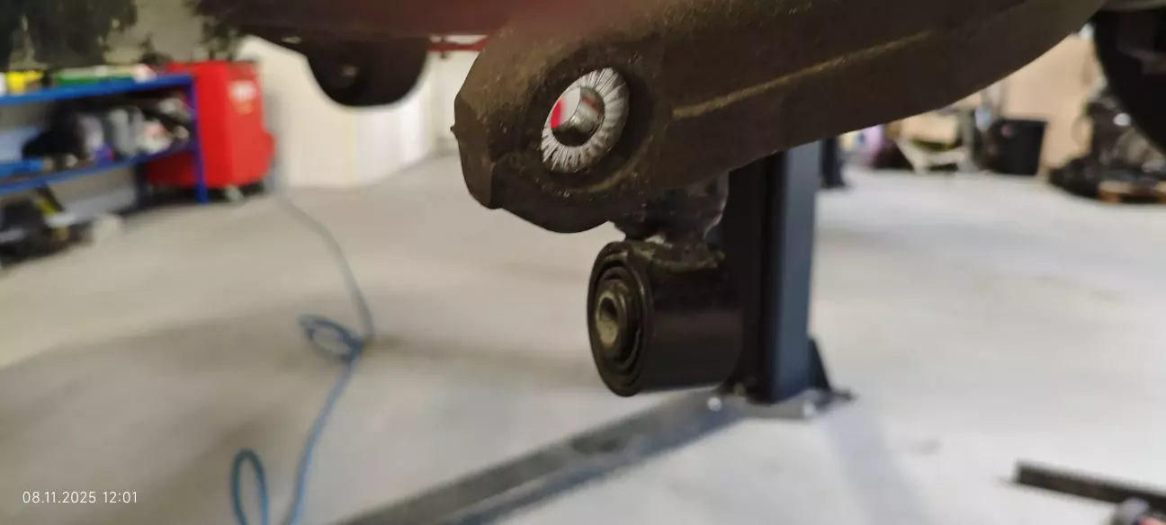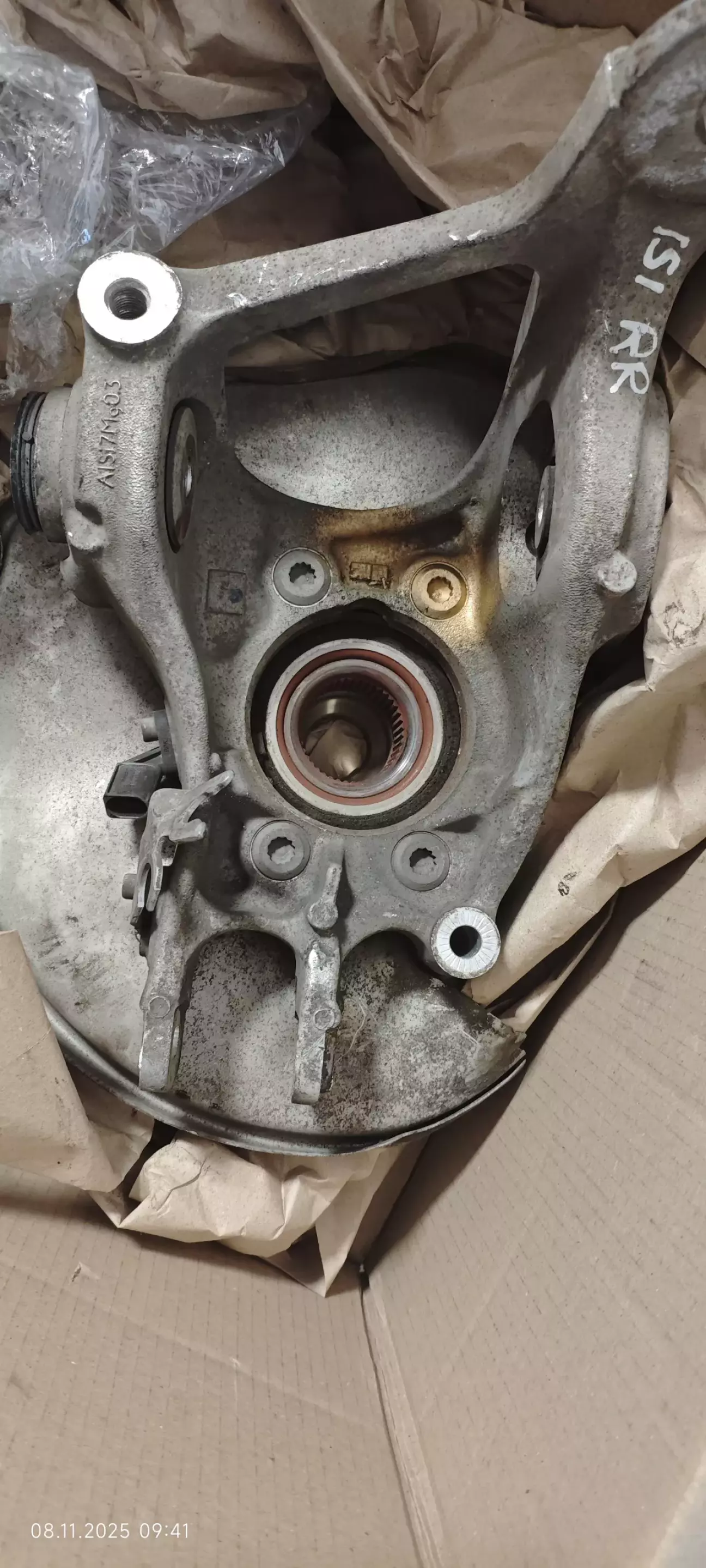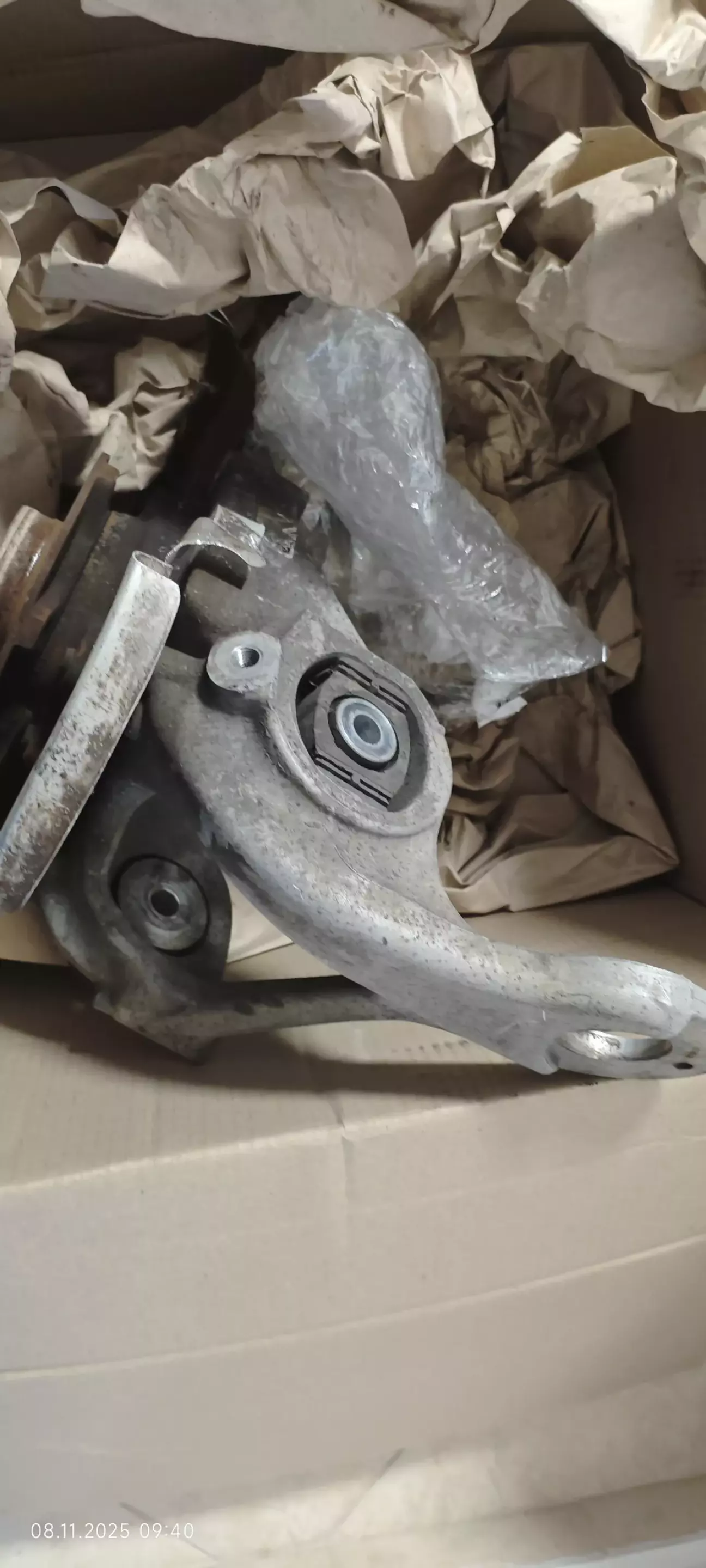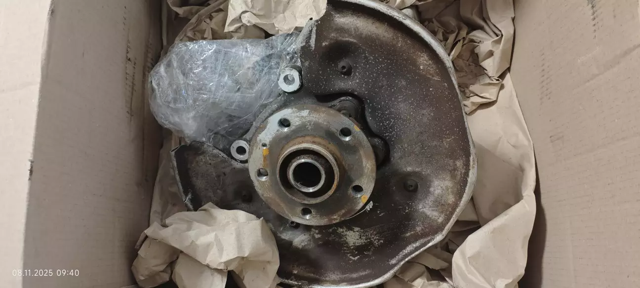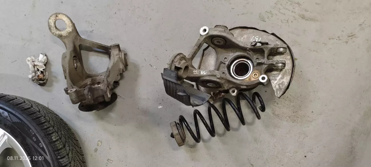 Привет всем. В общем, после многострадальной замены задних амортизаторов, когда мне высверливали болты, крепящие нижнюю часть амортизатора в алюминиевых поворотных кулаках. Спустя пары недель, появился стук на одной стороне. Сняв колесо для проверки, надеялся что это все же верхние опоры, которые при замене я не купил. Но оказалось то, чего я боялся больше всего - нужно искать и менять кулаки. С третьего раза купил два кулака в хорошем состоянии и по хорошей цене.