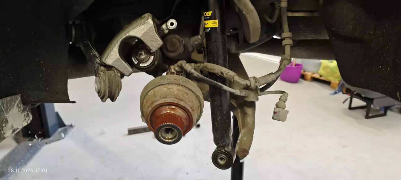 По болтам: крепление диска к ступице, ступичного болта и одного развального на кулак. Тормоза уже не успевали сделать, что б отдать мне машину в субботу. Поэтому неспешно, сам все разберу, перемажу и заменю.