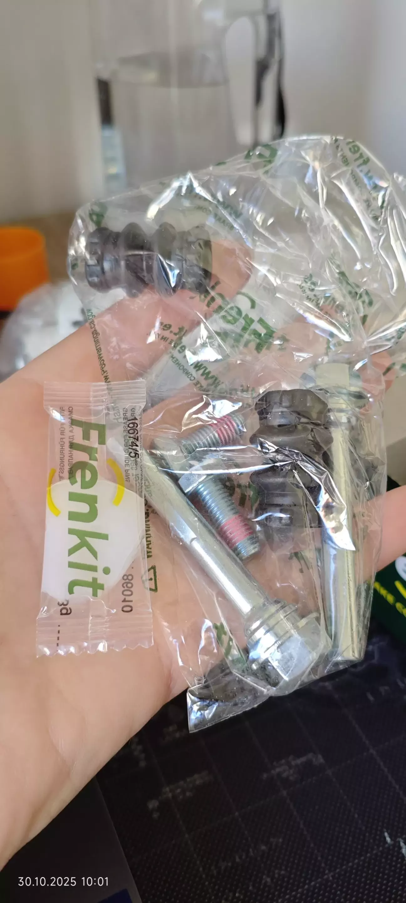 Так же взял новые направляющие, так как менял их, при замене дисков и колодок, только на одной стороне, так как там был клин.