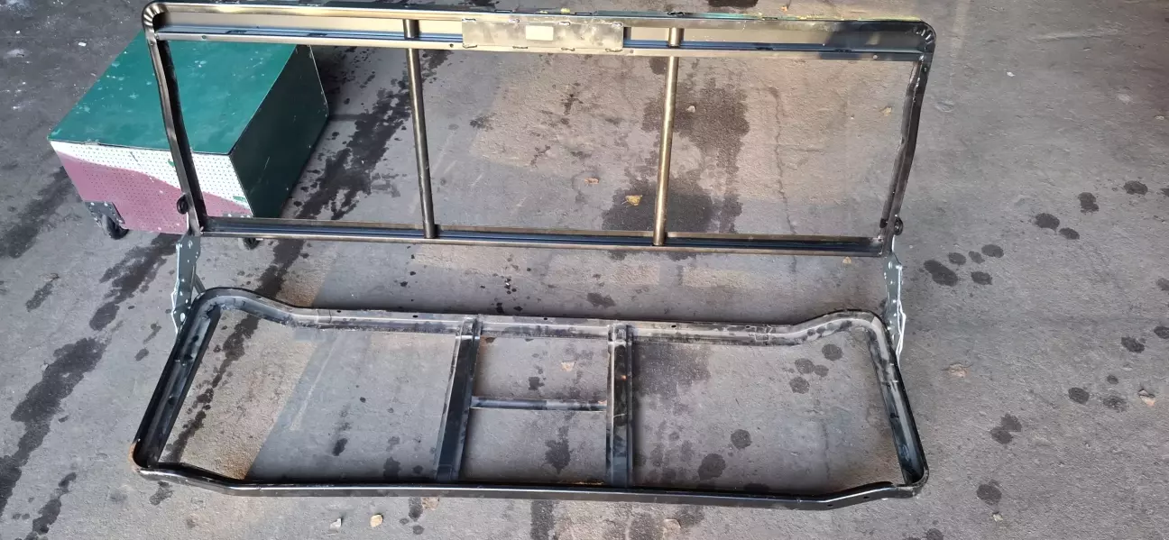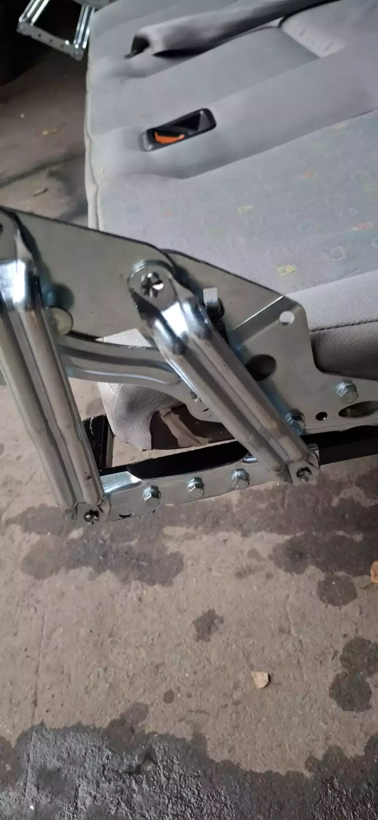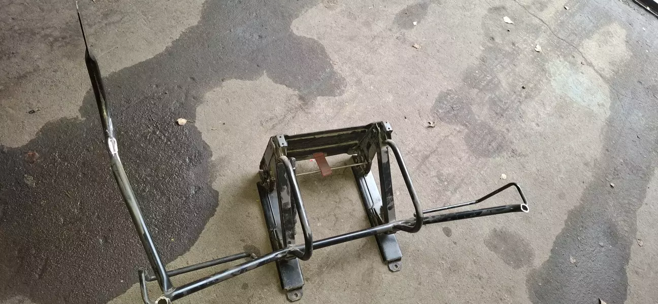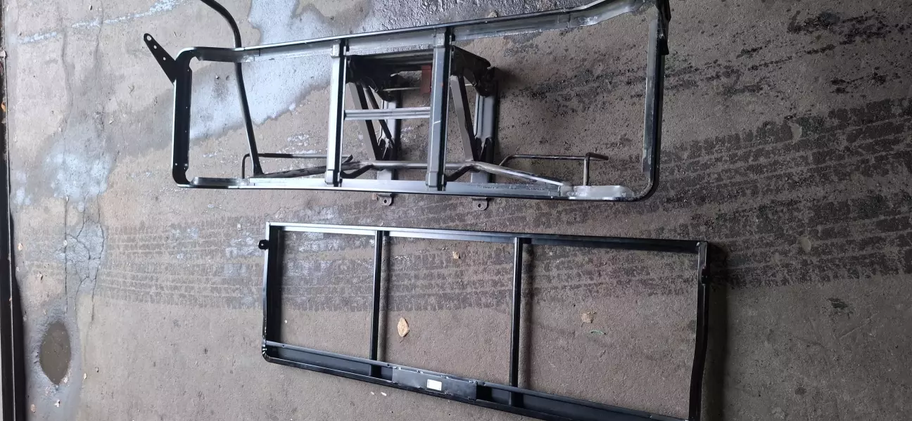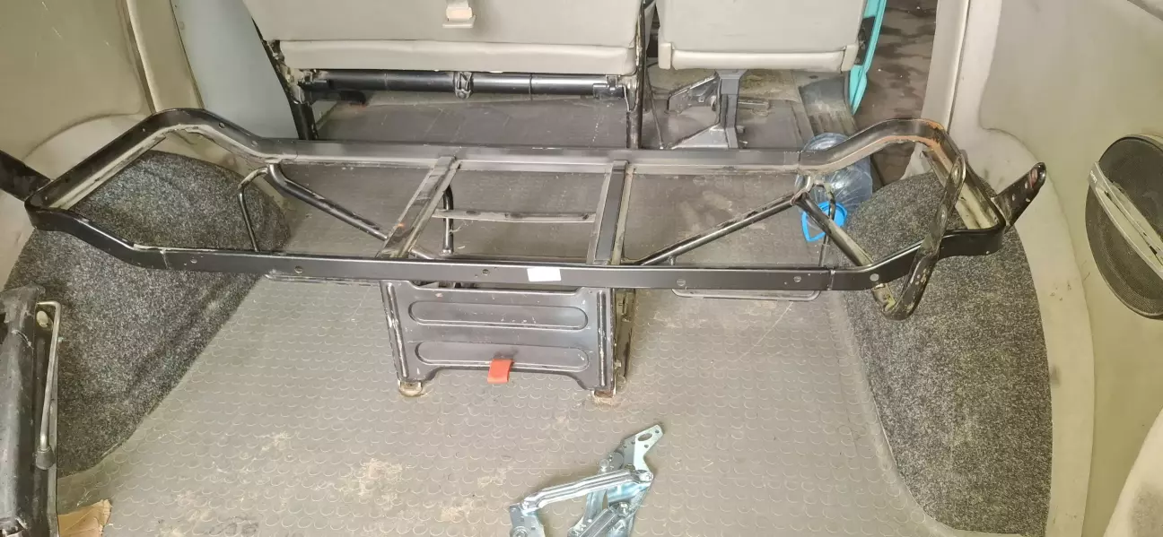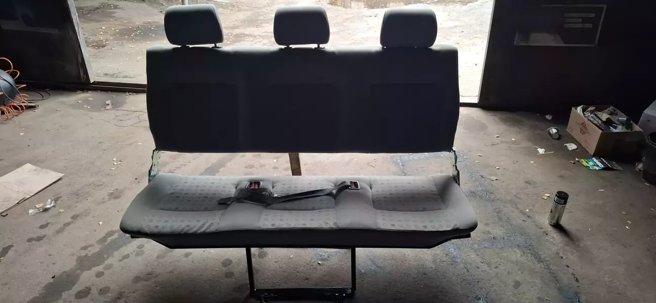 Трохи поясню. Взагалі на бусі їзжу рідко, та і диван стоїть у гаражі. Але ж таки прийде мир і бус буде використовуватися за первинною метою, а саме подорожі. Задній диван був начебто заводським але не зовсім. Спинка ничім не кріпилася, а тремалась на трубі, вся конструкція дико таркахтіла і була дуже важка. Але були +, яким я пожертвував, спинка складалась, як книжка (але не трималась) . Механізм дозволяв нахиляти усе сидіння десь на 45 градусів, нічого воно не давало, але ж все-таки трохи звільняло багажник.