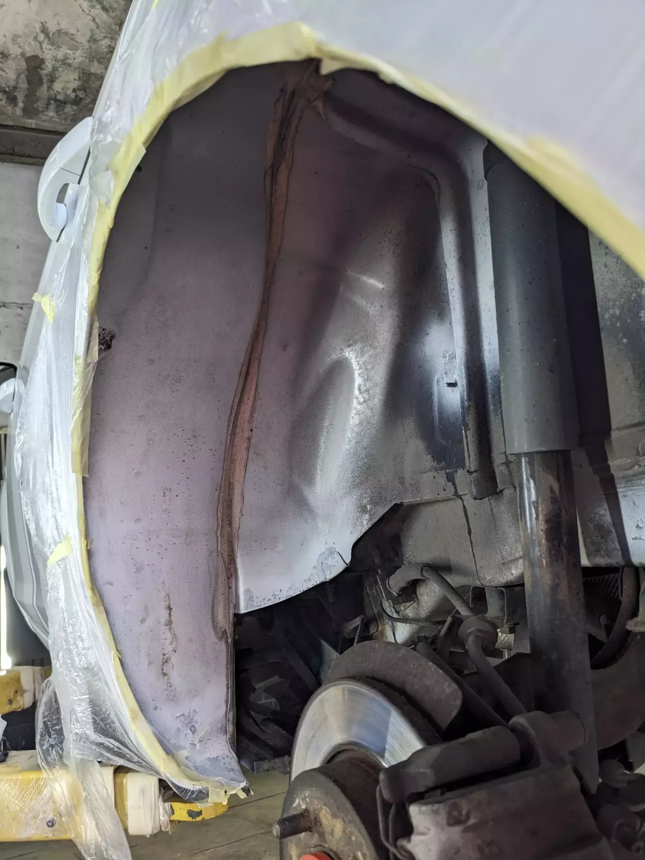 В планах було підфарбувати «болячки» Фокуса але перед фарбуванням прийняв рішення обробити задні арки у зв’язку з тим, що по ним виступила корозія. Перед нанесенням антикору спочатку зачистили місця корозії (як виявилось вона була поверхневою), два рази обробили перетворювачем іржі та нанесли акриловий грунт.