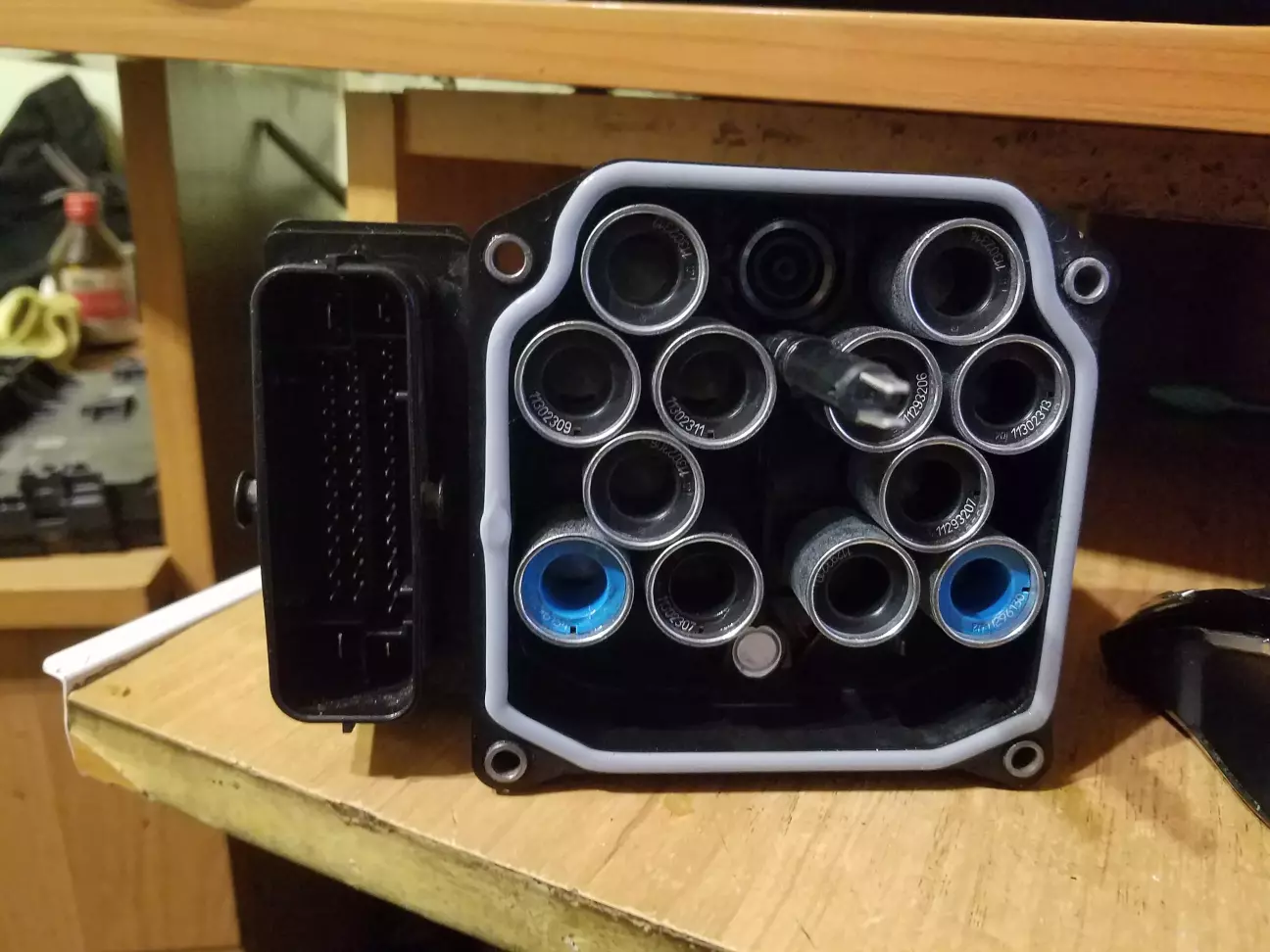 Купляти ще один блок не хотілось, адже мій то робочий. Що до кастомної прошивки, спілкувався з чоловічком з московії на Д2 він казав що може прошити в онлайні, саму прошивку надати він відмовився. В онлайні шитись я відмовився, тому навіть не питав в нього ціну. Було прийнято рішення модернізувати блок АБС своїми силами.. Озброївшись інформацією з того ж Д2, там був не один допис про модернізацію АБС (ссилок не зберігав). Блок АБС стоїть в дуже незручному місці, тому зняти його був ще той "секас", а я ще рішив зняти тільки електронну частину, гідравліку залишив на місці, щоб лишній раз не прокачувати гальма...