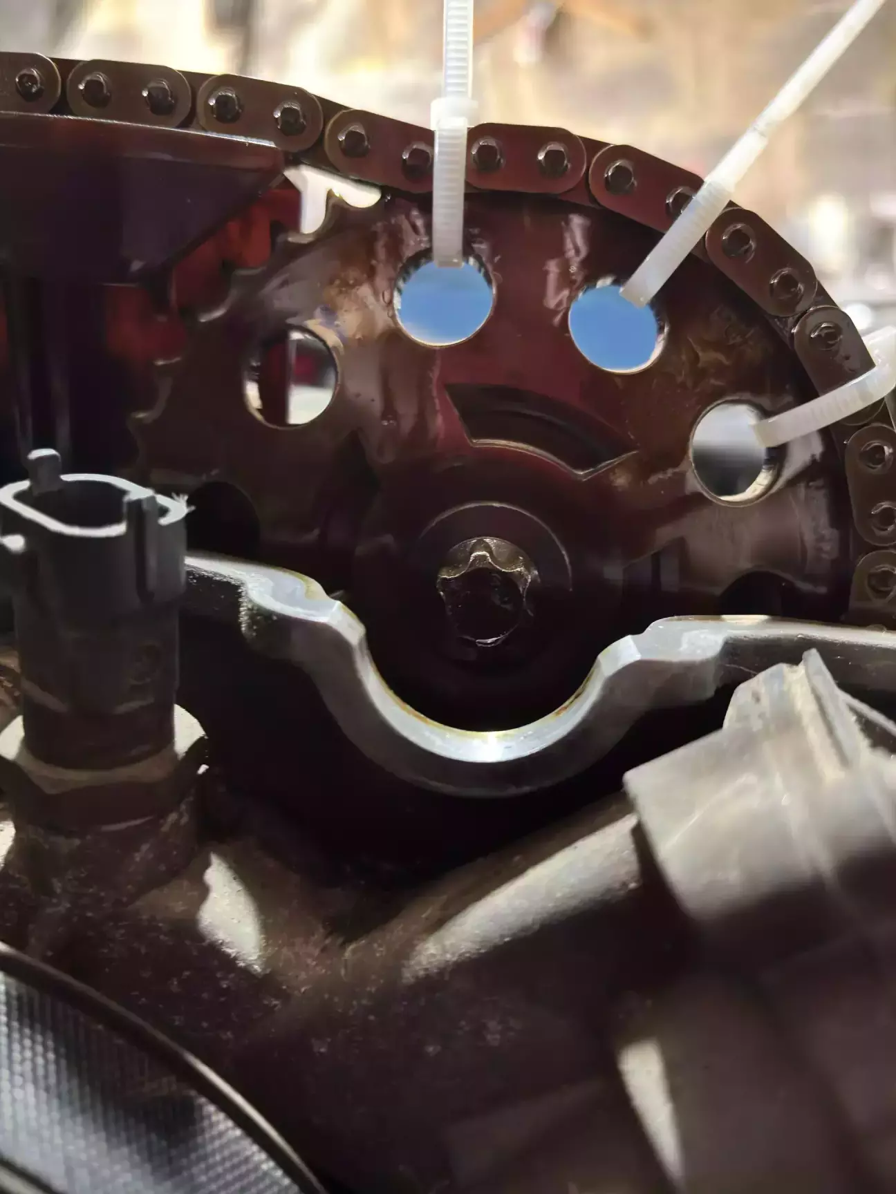 Вынимаем фиксаторы, прокручиваем коленвал на два оборота, проверяем метки - всё совпало, рокер не скинуло с клапана.