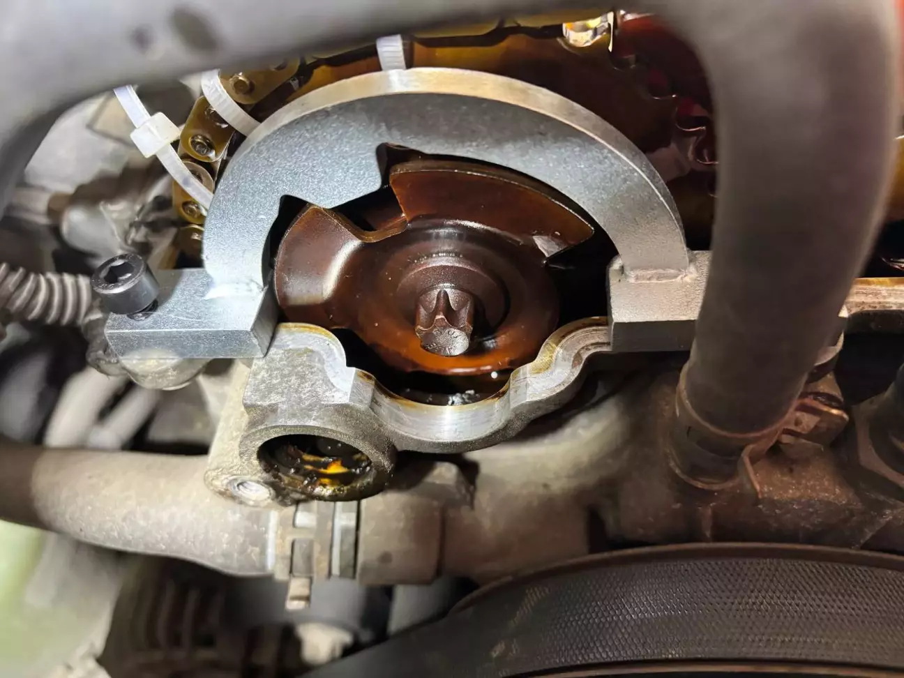 Заодно меняем масло и фильтр, масло в этот раз был залит Motul 5w40 8100 x-clean. Пускаем двигатель - запустился, стираем холодный пот со лба. Новых звуков не появилось, "ремонт" можем считать успешным.