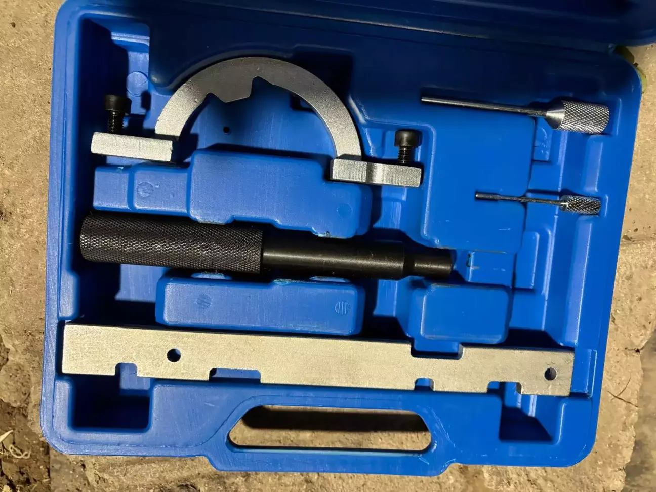 Выставляем ГРМ по меткам, фиксируем пластиной из набора распредвалы - пластина вставляется в прорези в распредвалах.