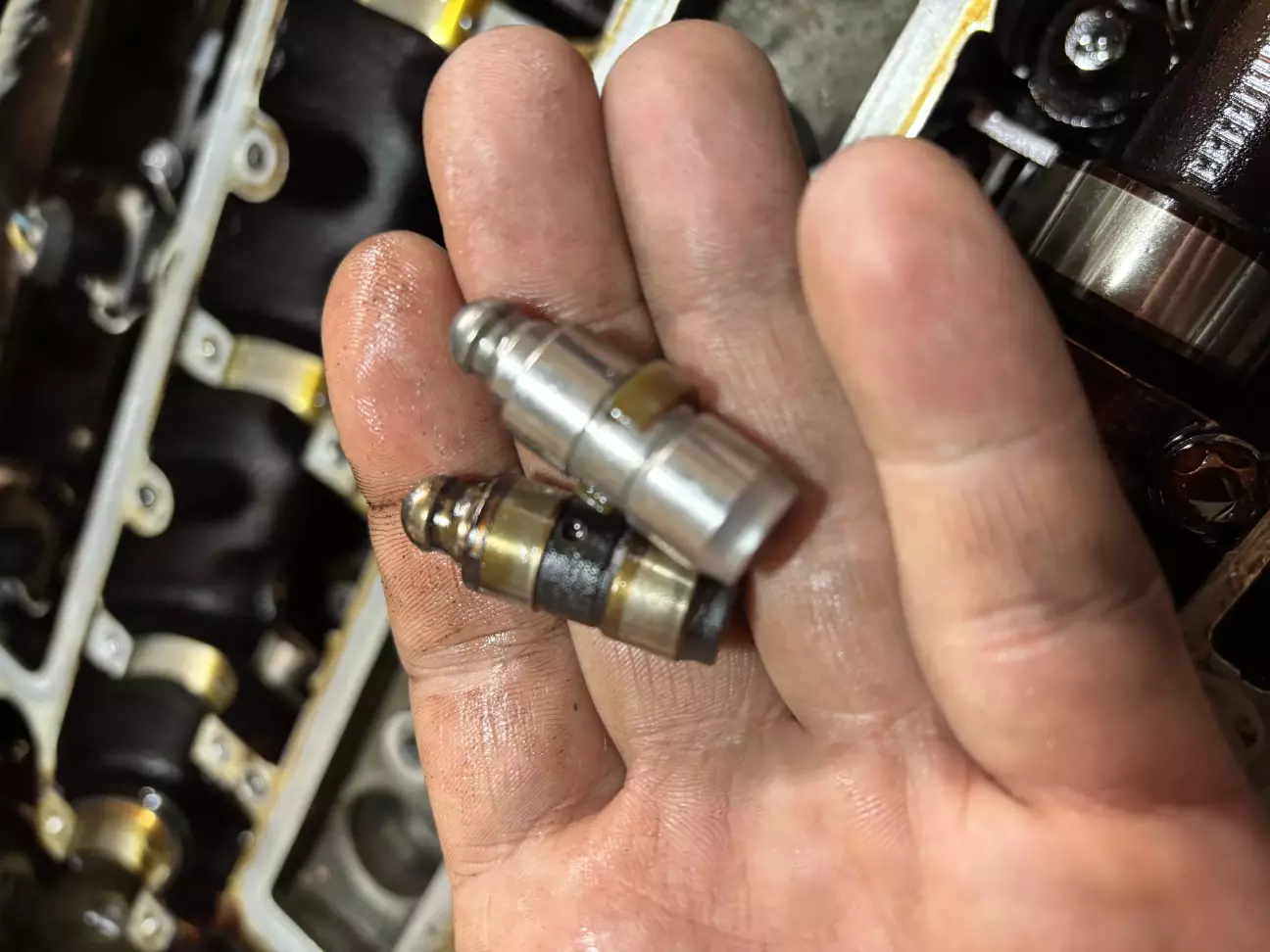 В процессе осмотра, выяснилось что один из рокеров выпал со своего места, проверяем гидрокомпенсатор - а он полностью "упал" - находится в нижнем положении, и сам не поднимается.