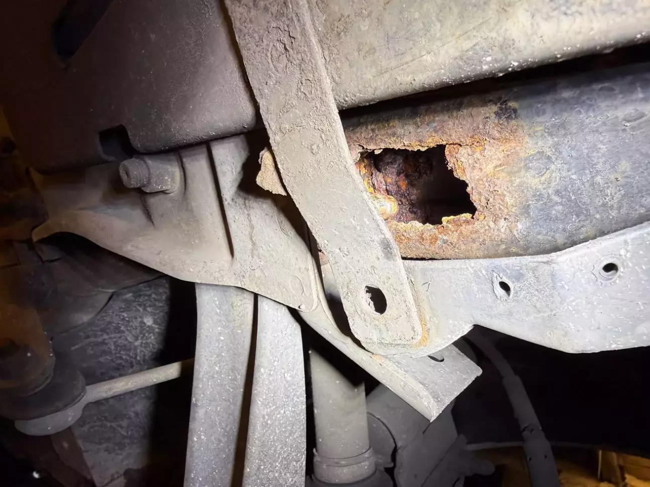 І на останок, при пеобстежені дннища і ходовки - щось зліва стучить, помітив знивший подовжувач підрамника...