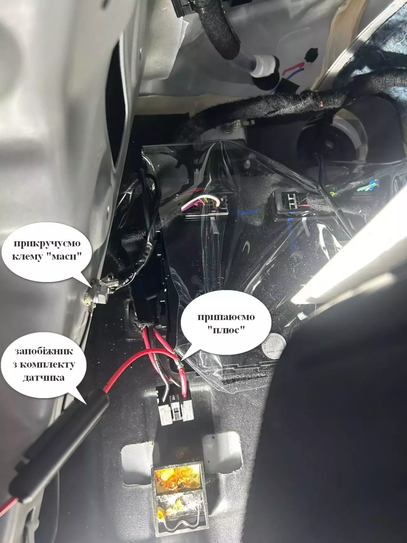 Для встановлення датчика відкриття багажника ногою потрібно: