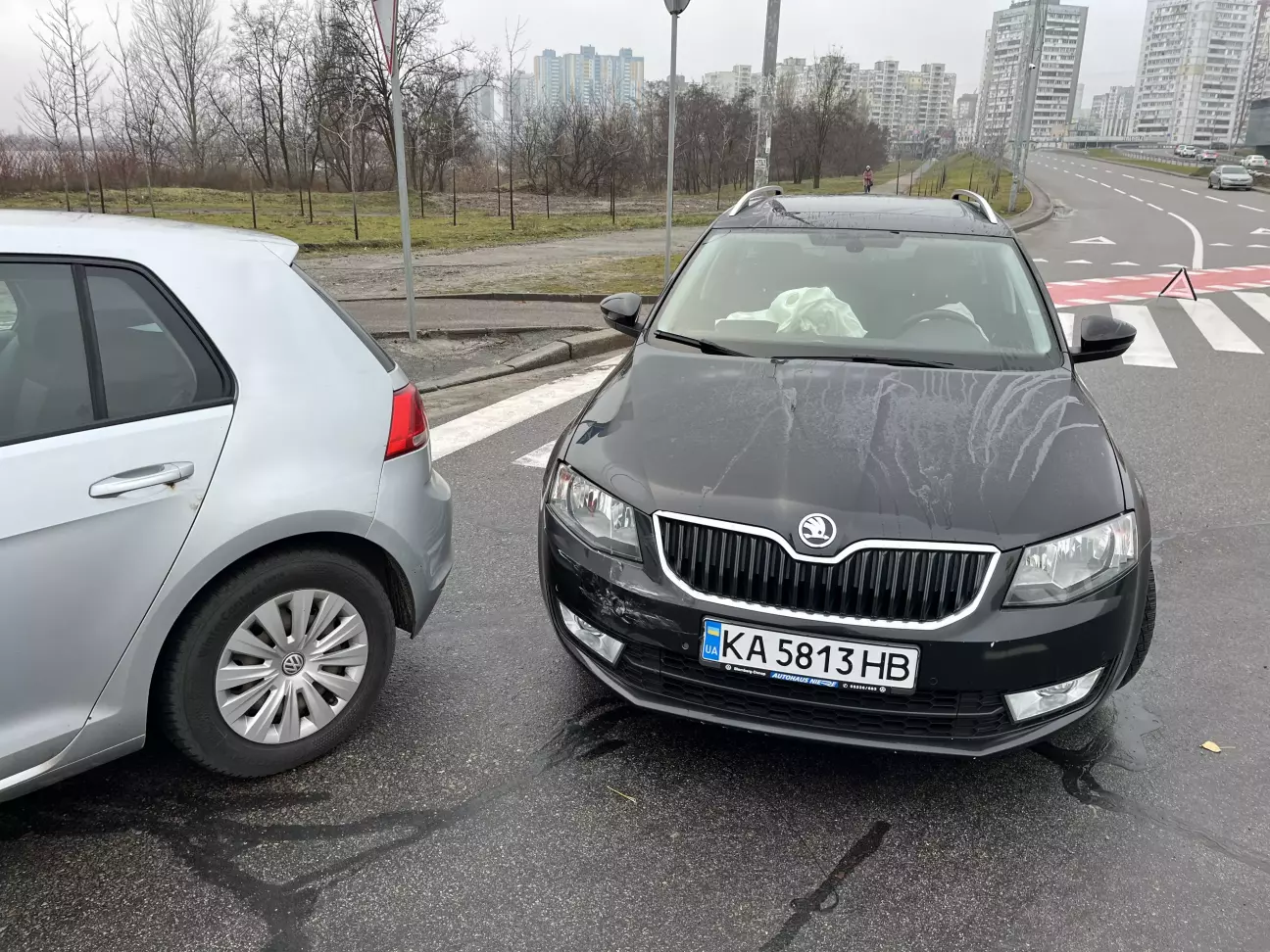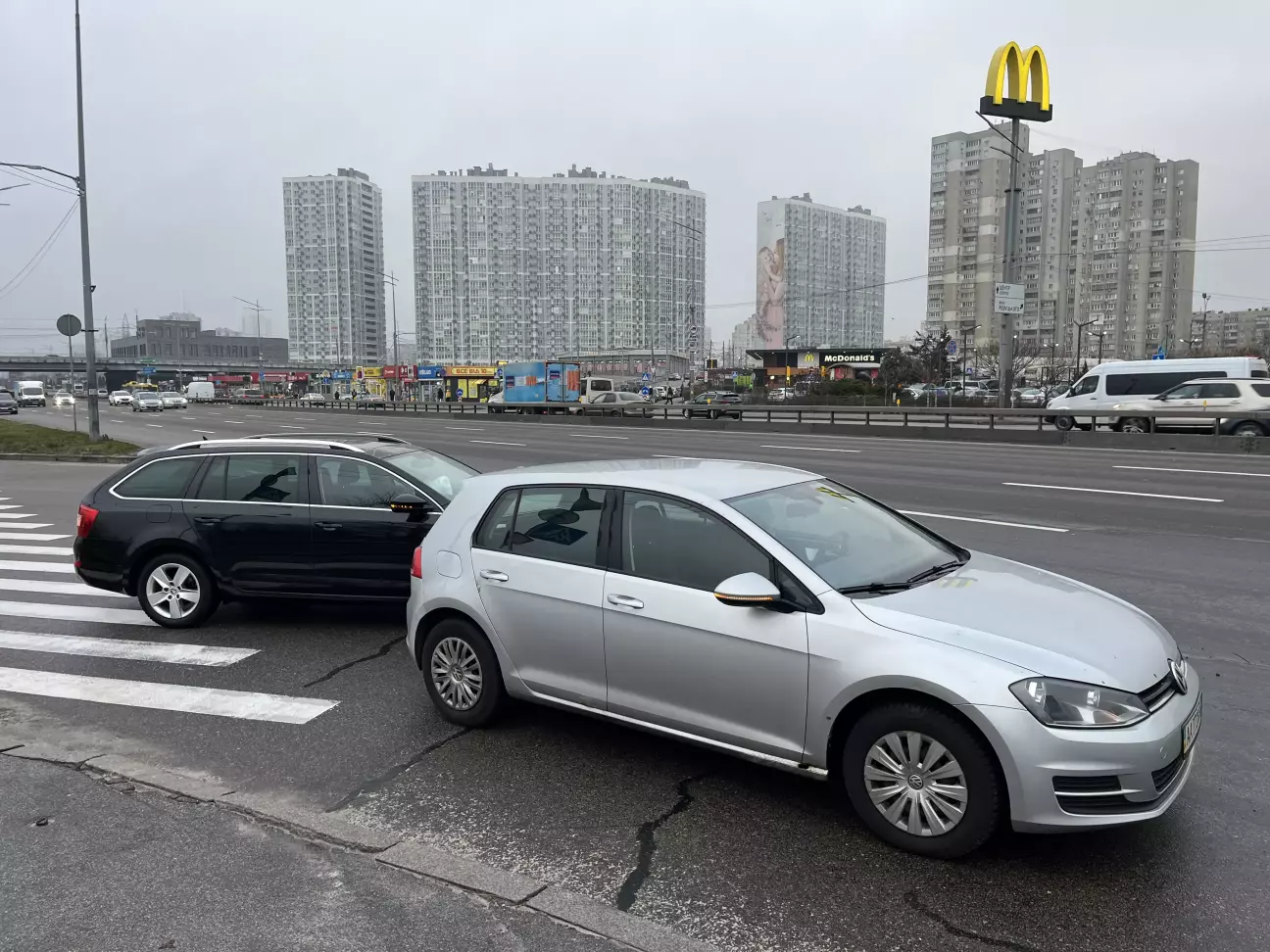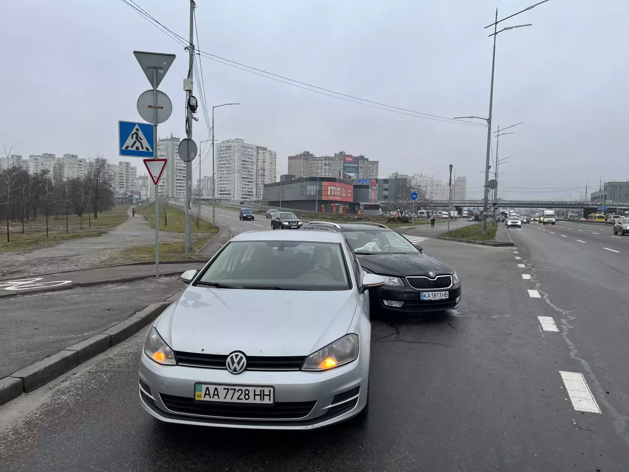 Напередодні я придбав причеп і мав намір на вихідних доправити його до батьків у Харківську область. Ранок пʼятниці (день пригоди) був чудовий і нічого не віщувало поганого. Зранку мав трохи справ, які планував вирішити ще до обіду. А вже в обід я мав забрати причеп і їхати до батьків. Та не так сталося, як гадалося… На виїзді з вул. Ревуцького на проспект Бажана (м. Київ) я на не високій швидкості наздоганяю VW Golf, який вирішив раптово зупинитись для пропуску громадського транспорту, маючи додаткову смугу для безпечного виїзду. Кияни мають мене зрозуміти. Та саме цікаве, чому я не зміг загальмувати? Інієм була покрита розмітка пішохідного переходу, поверхня якої була абсолютна гладка і не мала фактури. І я, відповідно, «приплив» чітко у Гольфа… Я у своєму житті мав купу різних ситуацій на дорозі, та на таке я не очікував. Хтось скаже, що абсолютно очевидна ситуація, і я повністю погоджуюсь. Проте, деколи стаються і такі банальні ситуації. Моя вина очевидна, я позаду і не обрав безпечну швидкість руху та дистанцію відповідно до обставин. Я не мав наміру і бажання сперечатись, розуміючи ситуацію. Про що одразу повідомив іншого учасника пригоди.