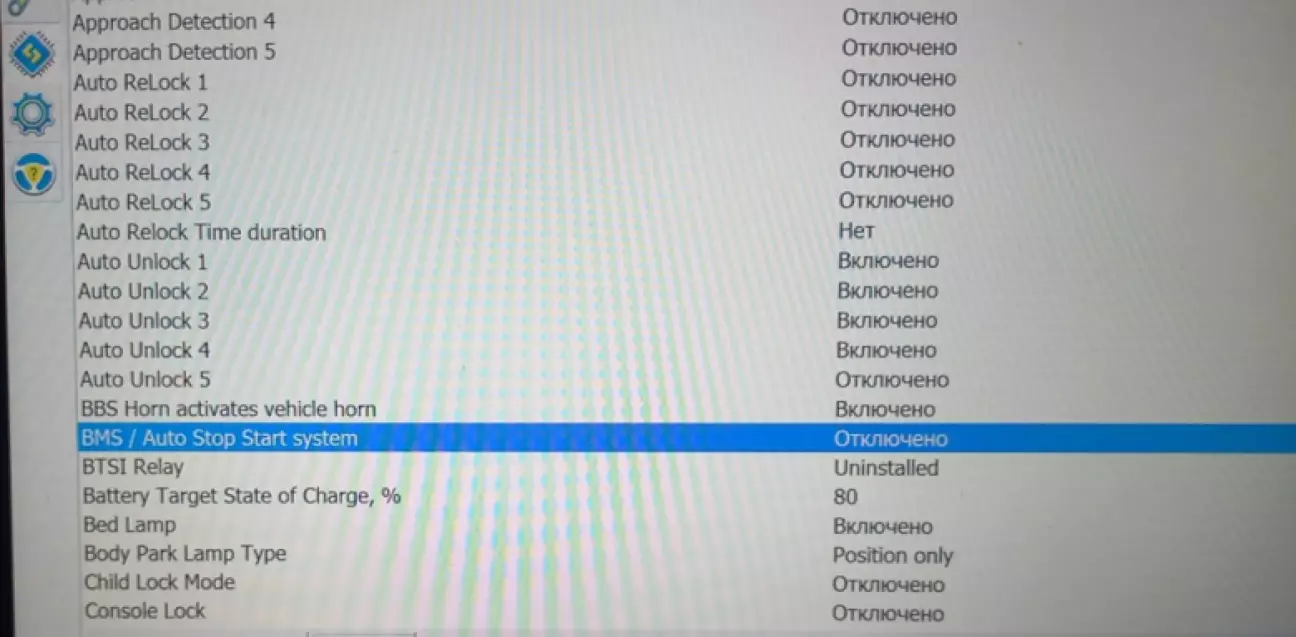 Заходимо в ВMS і шукаємо BMS / Auto Stop Start system - обираємо Вимкнути і зберігаємо.