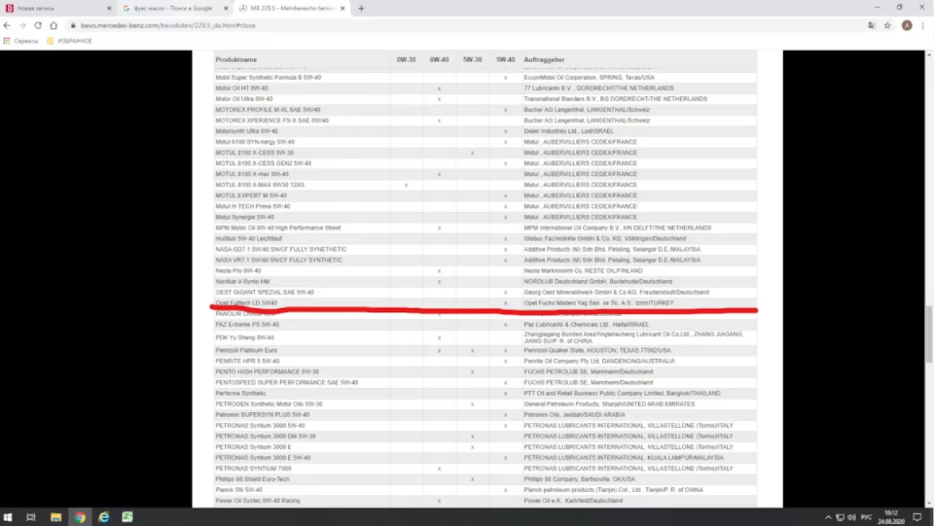 В пользу масла Opet FULLTECH LD 5W-40 сыграло, что бренд не раскручен, а значит подделок быть не может, имеет реальный допуск MB 229.5, который превосходит допуск PSA B71 2296 (проверить можно по ссылке bevo.mercedes-benz.com/be…isten/229.5_de.html#close).