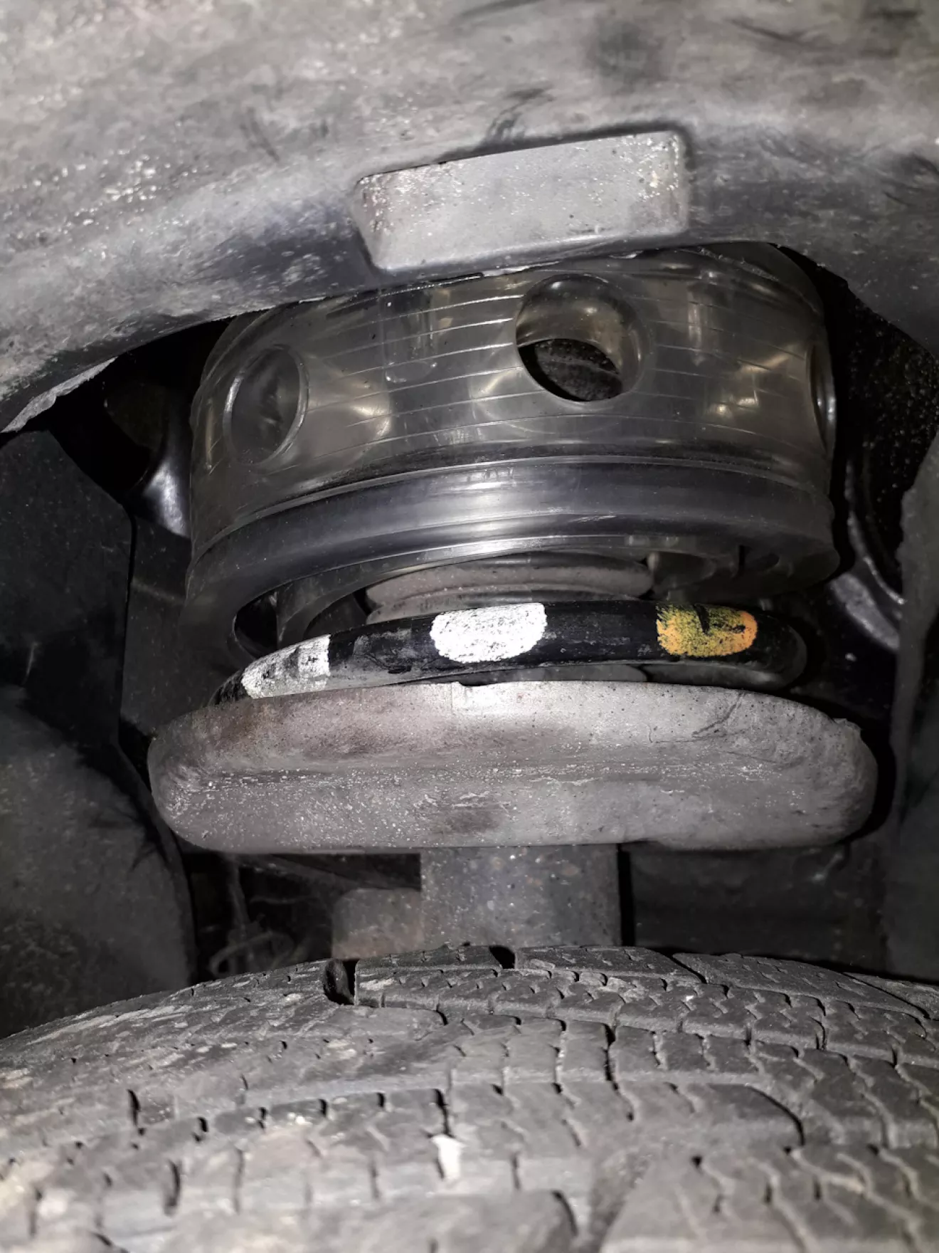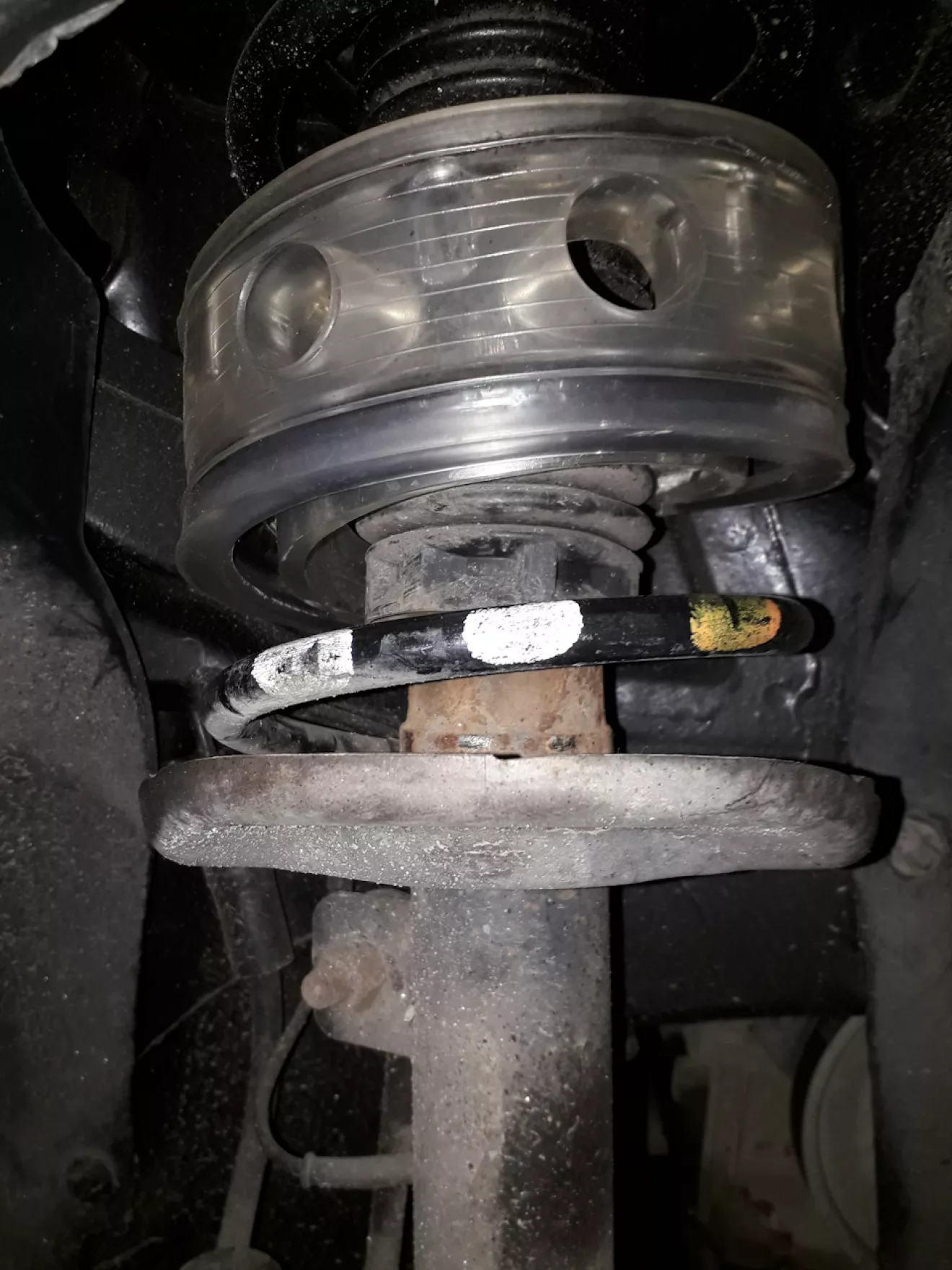 Прошлая зима с нечищенными дворами и засыпаным гаражным кооперативом пощекотала пузико =КИСЕ=, поэтому перед переобувкой прикупил на ЛОСКЕ универсальные силиконовые межвитковые проставки на перед — средние (около 40 мм), на зад — максимальные (около 60 мм). Цена — 300 грн за две пары.