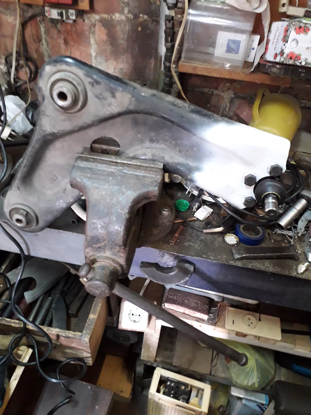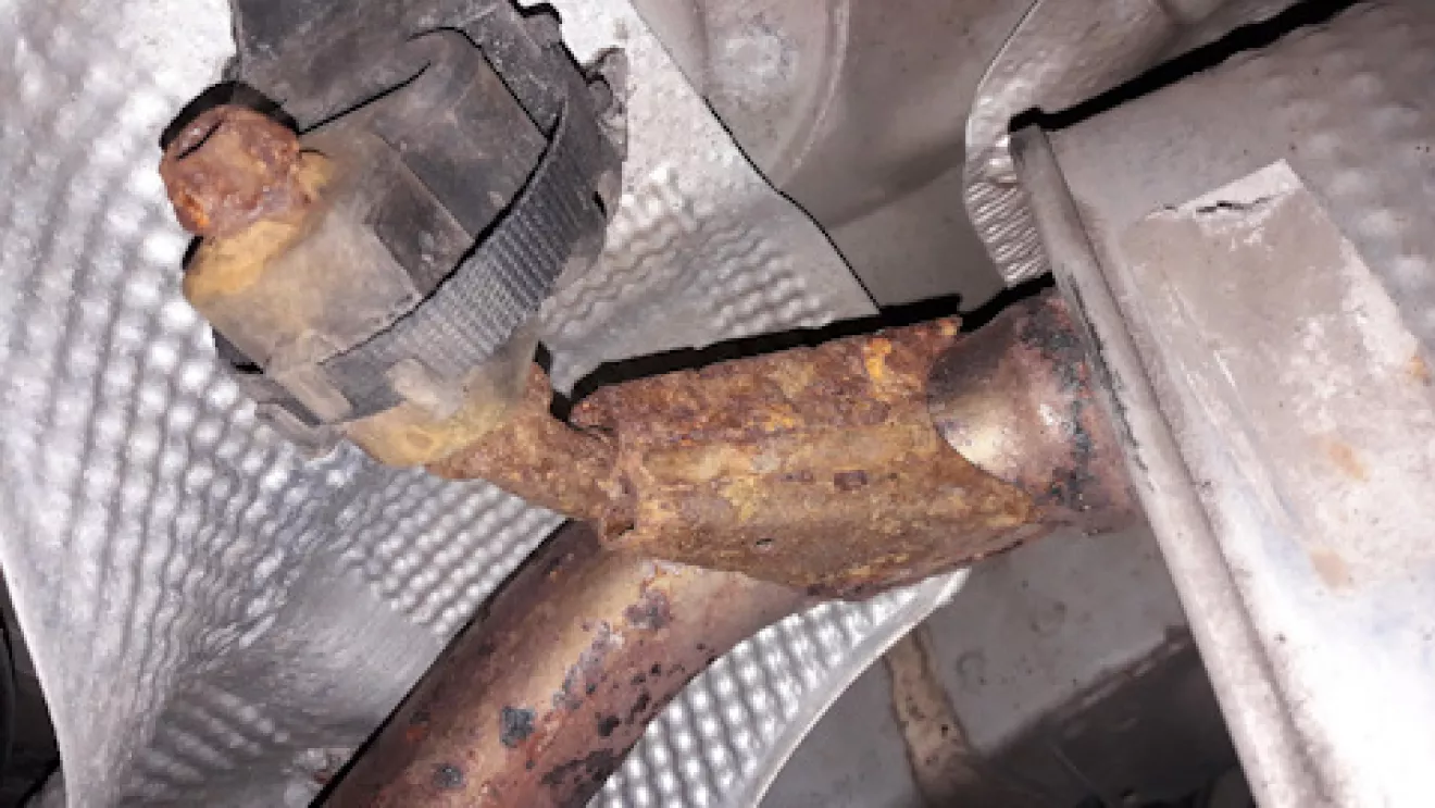 Появились посторонние стуки при проезде по ямкам, особенно при повороте на лево. Как говорят автомеханики: "Хороший стук наружу вылазит". Это не наш метод, поэтому заехал на яму "на смотрины". Диагностика показала кончину правой шаровой, направляющих правого суппорта (болтался как .уй в стакане) и излом кроншейна глушителя.