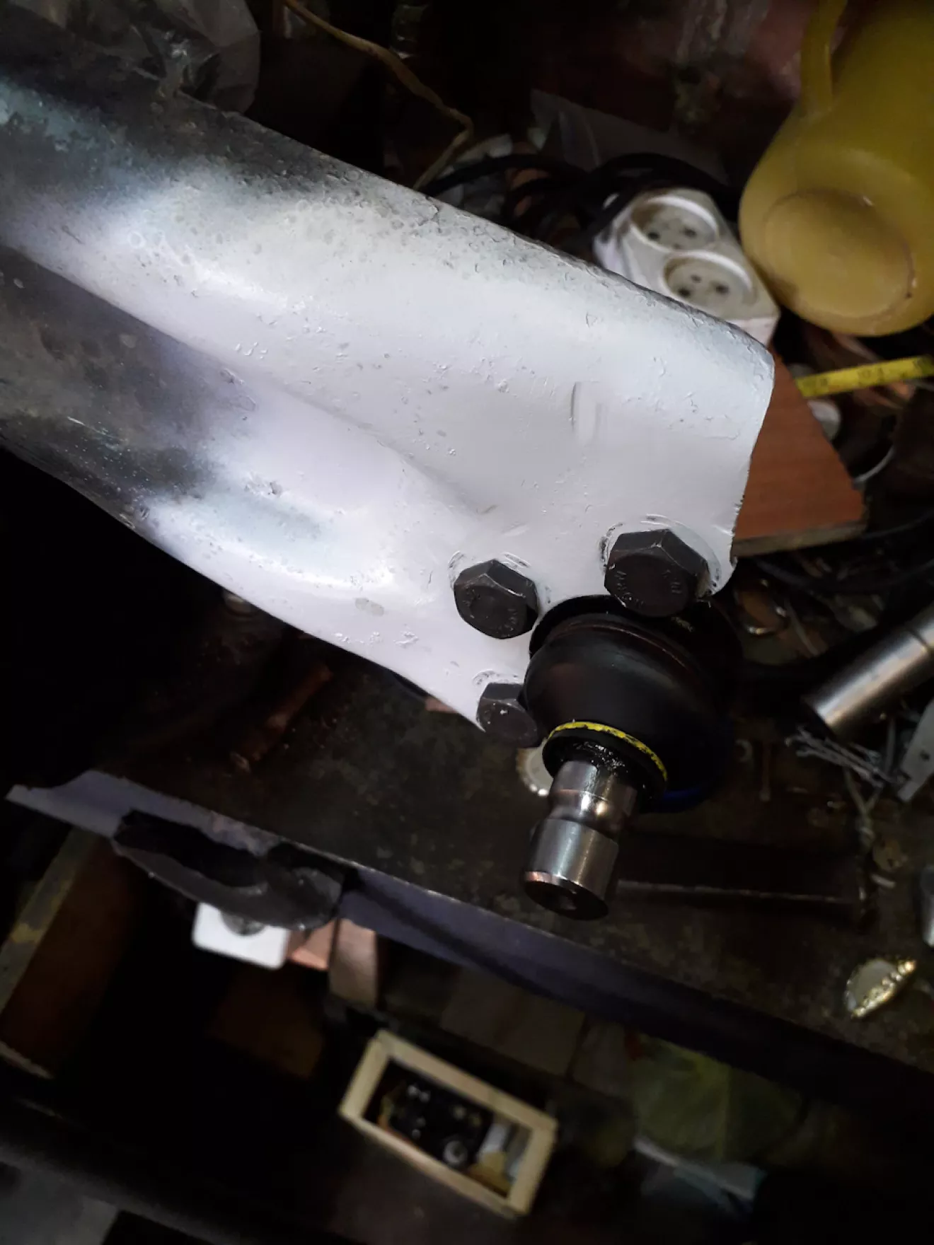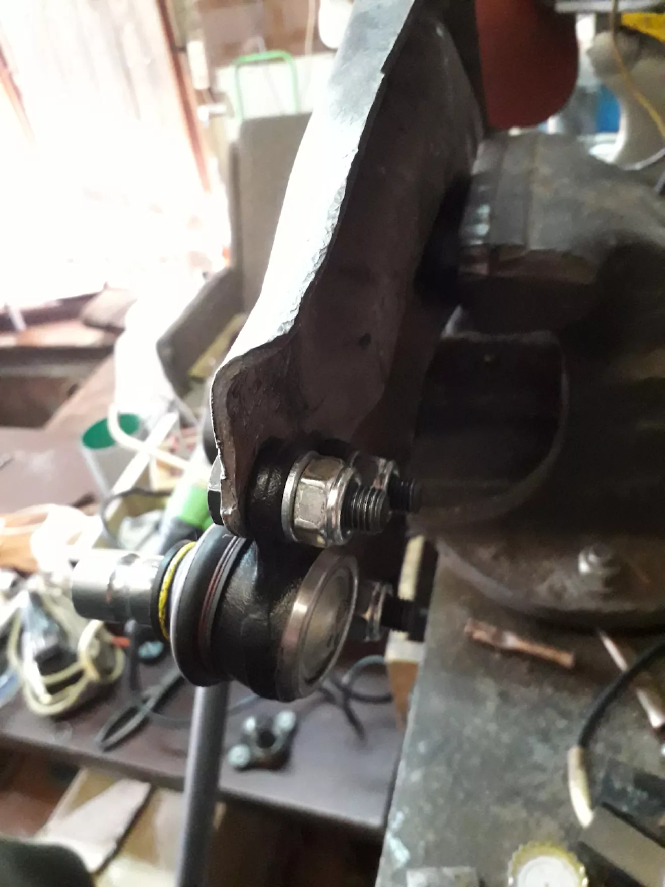 На десерт оставил замену шаровой. Хочется сказать огромное спасибо конструкторам за удобстово замены: 1. Шаровая на заклепках, поэтому необходимо снять рычаг целиком