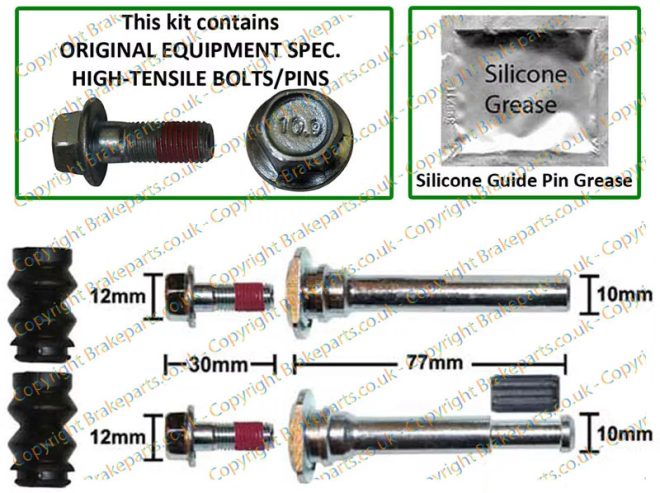 Следующим этапом была замена направляющих суппорта. После разборки и промеров старых и новых направляющих стало понятно что проблему простой заменой не решить (размер один в один, износа вообще не было). Комплект Frenkit 810004 состоит из 2-х направляющих, пыльников и смазки. Верхняя направляющая — металл, нижняя с проточной под резинку.