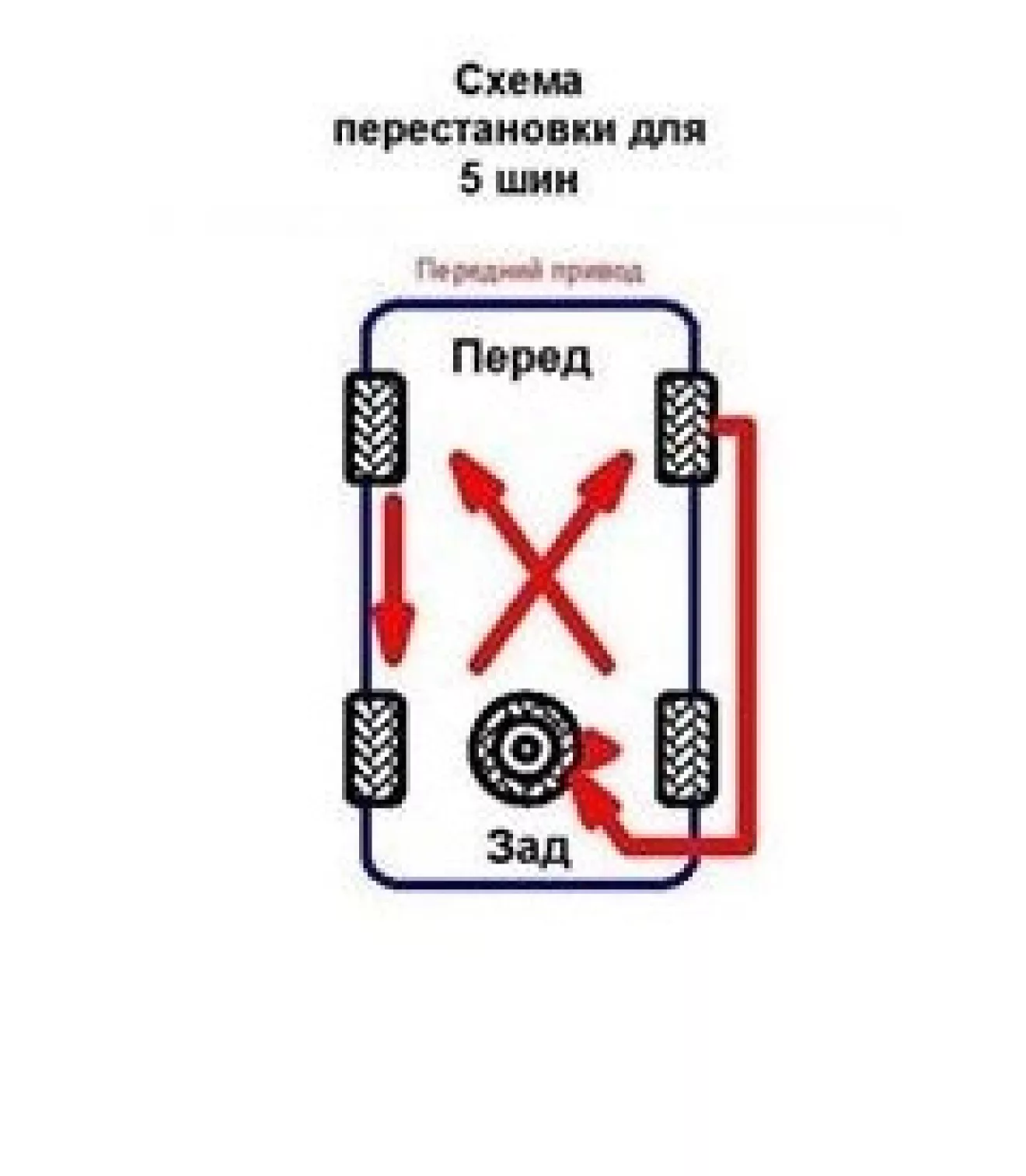 Для равномерного износа колеса устанавливал по схеме с учетом запаски.