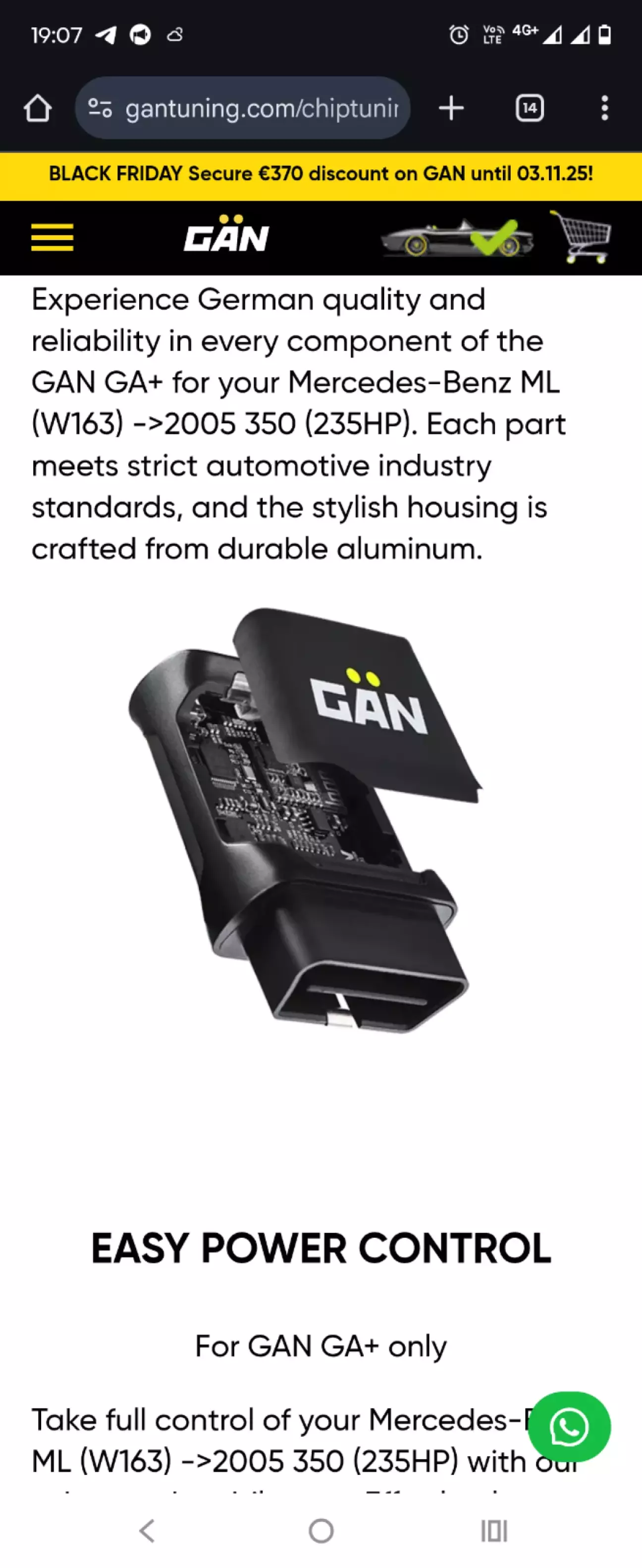 Вирішив замовити chip GAN GA+ Маємо додатковий блок управління, який підключається до роз’єму OBD II вашого автомобіля. Блок управління отримує інформацію безпосередньо від системи двигуна. Програмне забезпечення для оптимізації блоку змінює сигнали, а потім передає їх в ЕБУ вашого автомобіля, щоб максимізувати потужність і крутний момент...