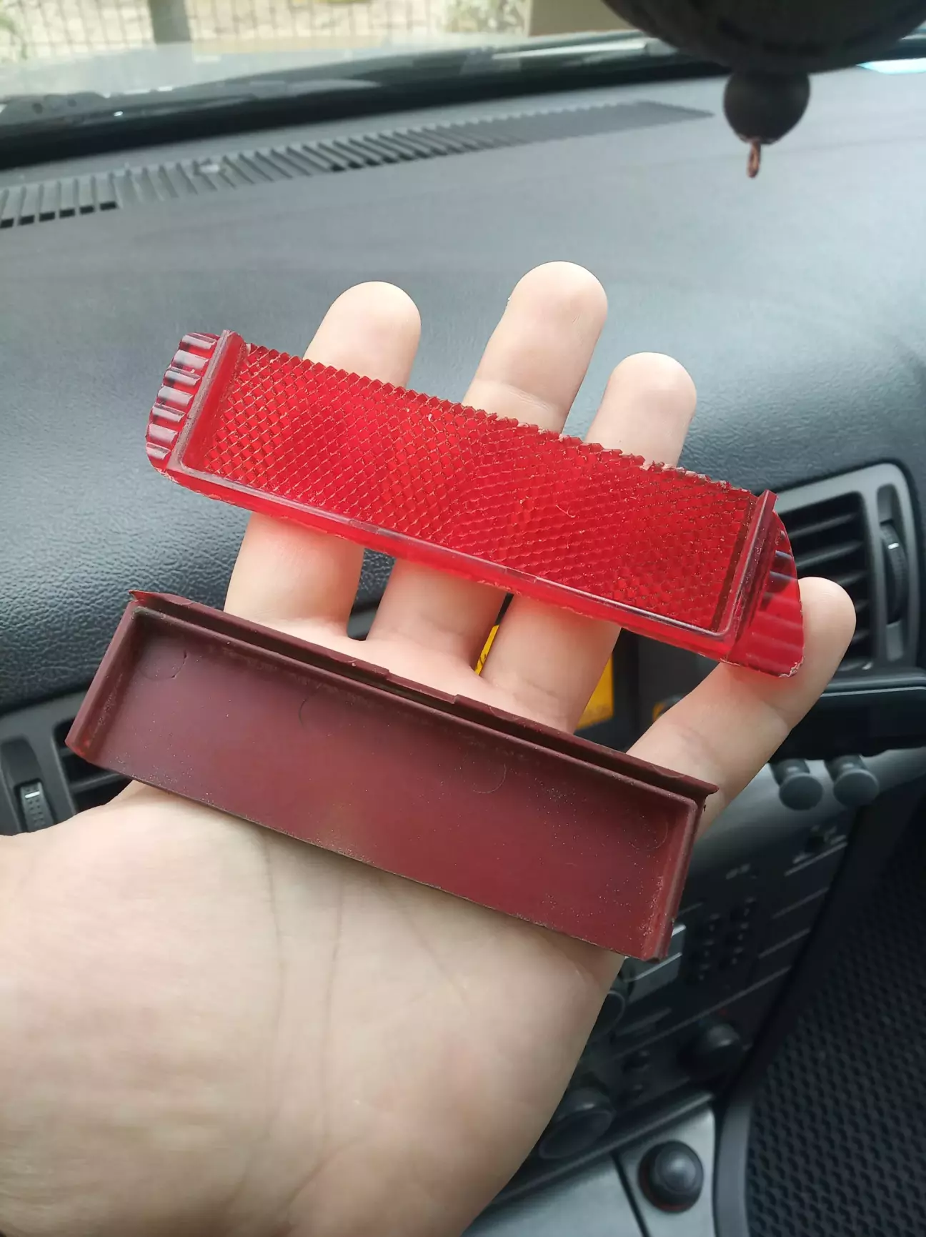 Прям все як має бути: ліхтар із двох частин, підложка для підсилення конструкції та сам катафот.