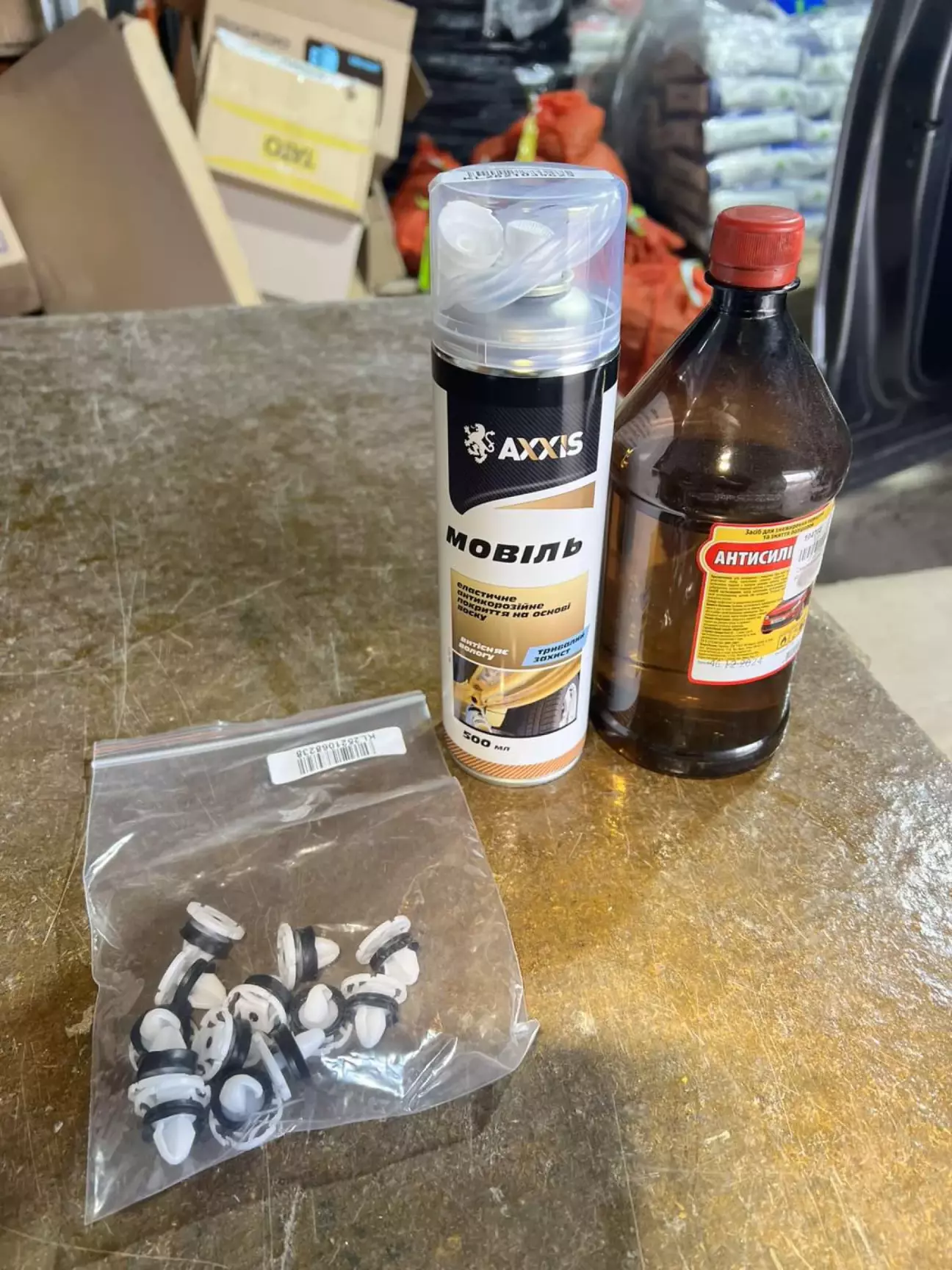 Матеріали: кліпси 9345 ZN, брав замінник 182179 від Febi (якість норм), віброізоляція - Acoustics Profy A2 (2,2 мм), шумоізоляція - Acoustics Sound Wave - (15 мм), мовіль Axxis (ax-7011).