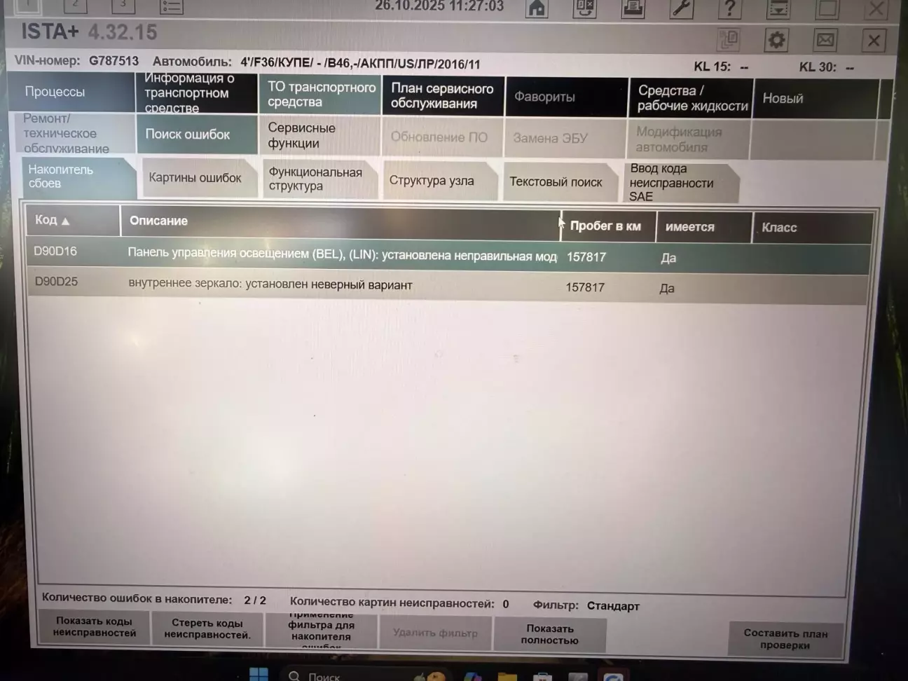 Після встановлення все працює, але це ж БНВ, маємо помилку: D90D16 Панель управления освещением (BEL), (LIN): установлена неправильная модель