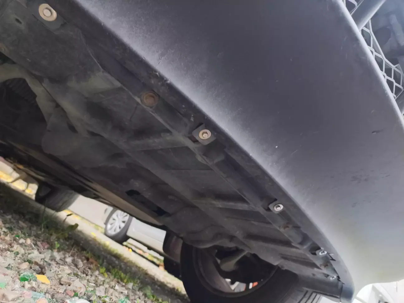 Прикручуємо п'ять саморізів з закладні по низу бампера. Замінив їх на нержавіючі. Мабуть потрібно було замінити і ті три, що тримають нижній щиток...