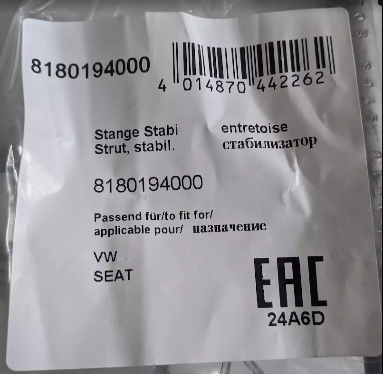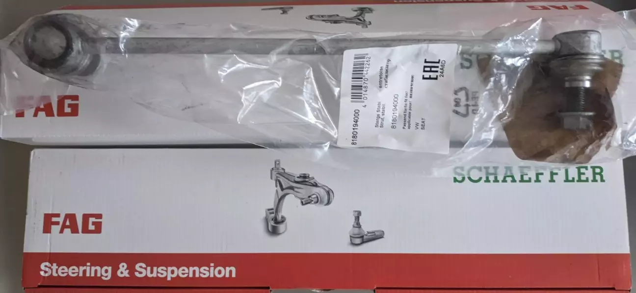 1) Передні стійки стабілізатора FAG 818 0194 10, ніби-то "посилені", хоча близько 22 тис. назад (травень 2024) їх вже міняли на прості та дешеві SWAG 32 92 4122
