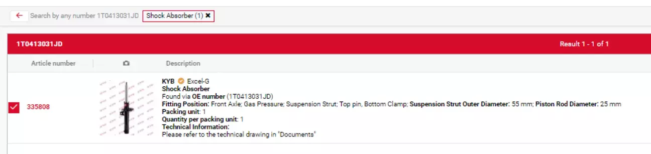 Як пряма заміна йде KYB 335808 з серії Excel-G: