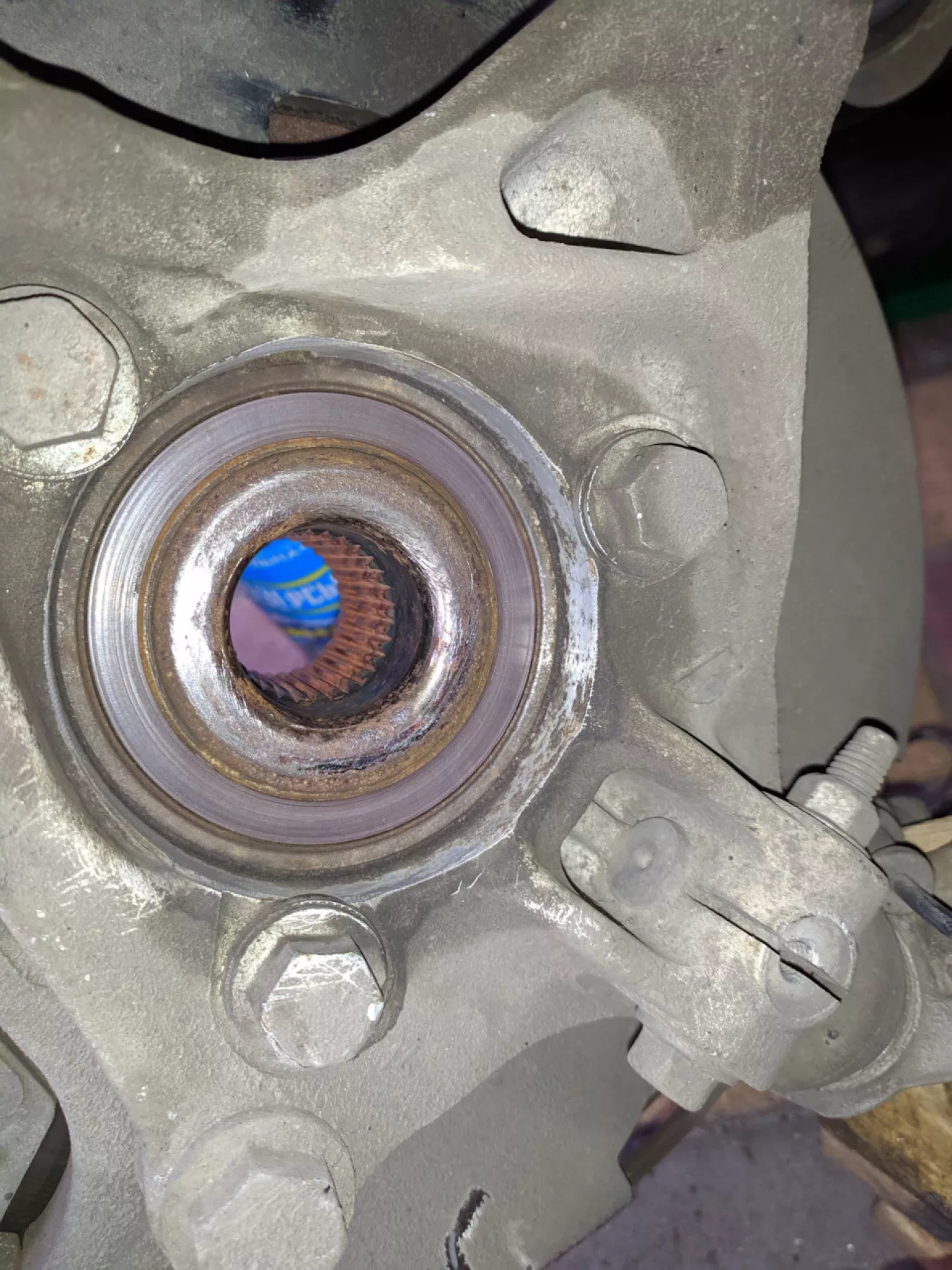 Но при возвращении датчиков на место мне удалось рассмотреть в отверстии в ступице место с обломанной шайбой. Находил информацию, что кольцо можно не ставить, но я люблю как по заводу.