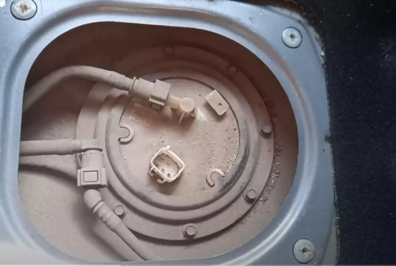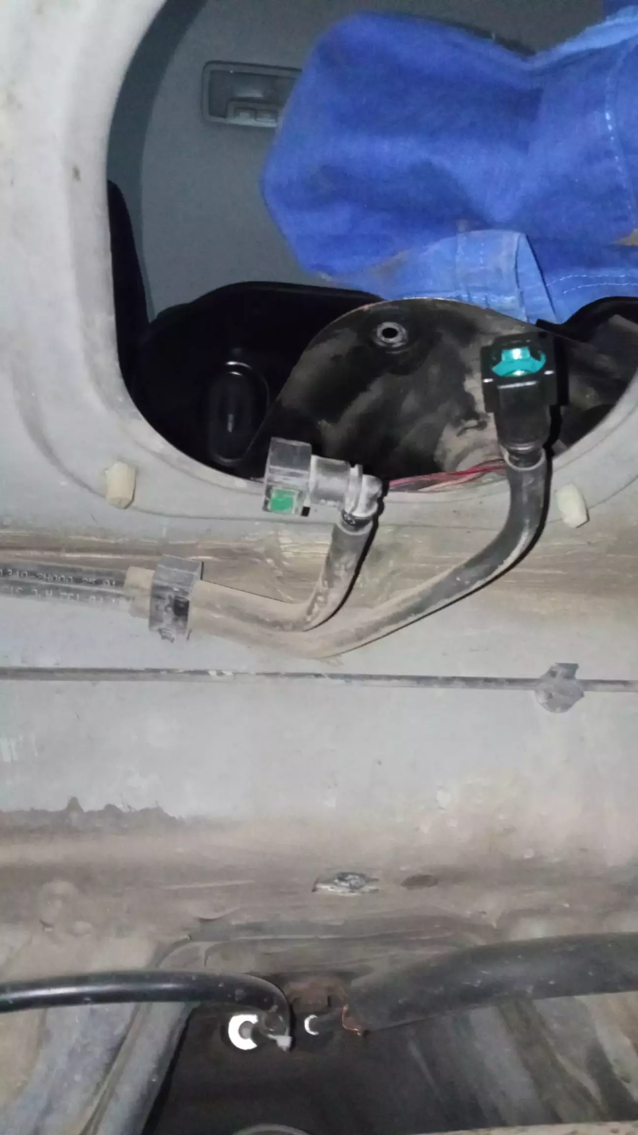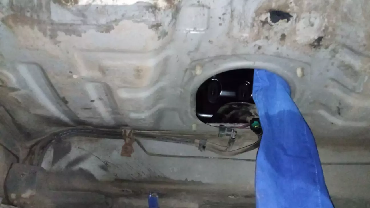 І почався процес заміни спочатку все стандартно відкидаємо заднє седіня відключаємо фішку трубки і переходими в яму.