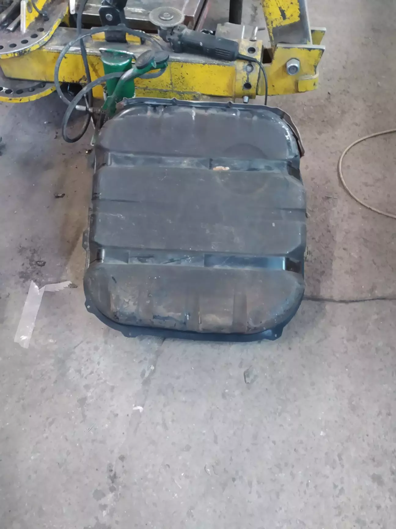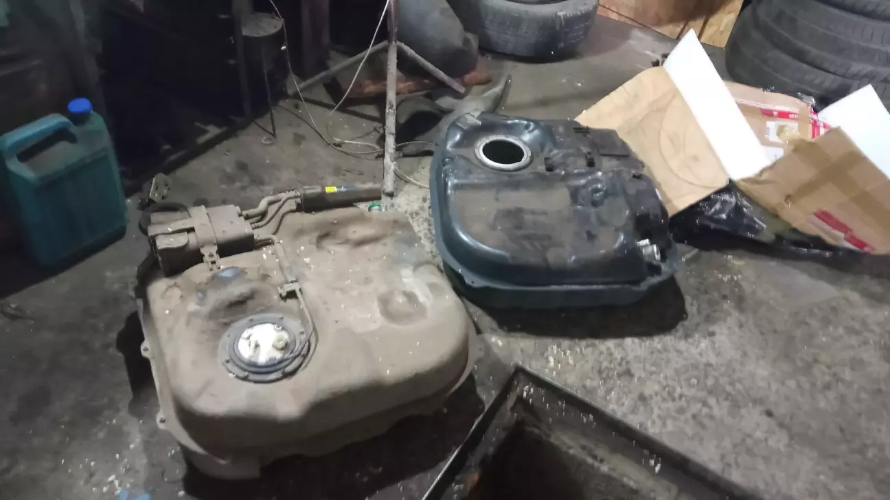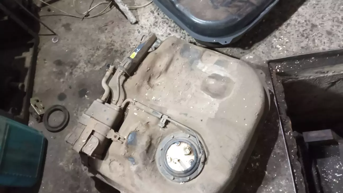 Але він запропонував заробити трішіну двох компонентним клейом, яким можна клеїти сталь.Варіант 50\50.Підняли задню частину авто так щоб бензин перетік від тріщини.висушили місце і зачистили .замазали і дали висохнуть до ранку.Поки сох клей почав моніторити ціни на бензобаки.нові лише тайвань, але знайшов розборку з адекватними пропозиціями.