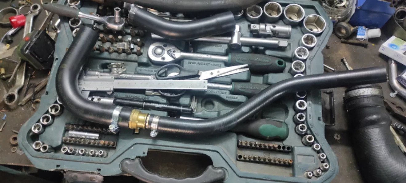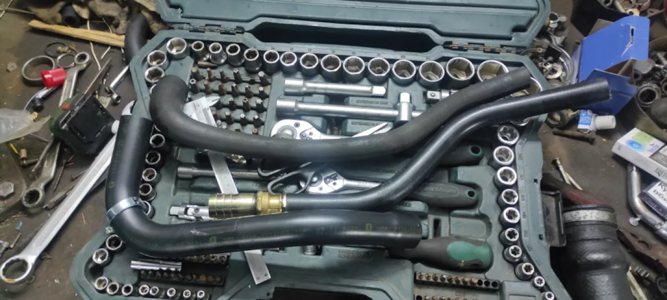 Постольку поскольку ездить надо, а за один патрубок отдавать 50-100 долларов жаба говорит мне "Ква", решил на время(пока не придёт с Алика комплект силиконовых патрубков) чего-нибудь сообразить.