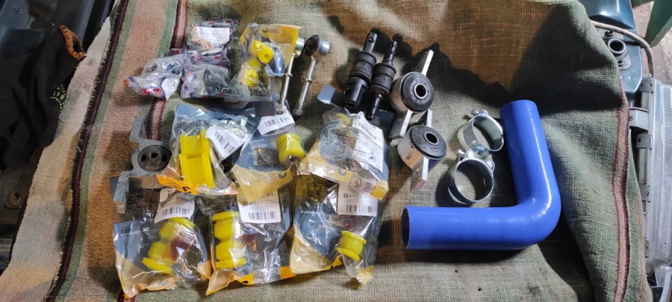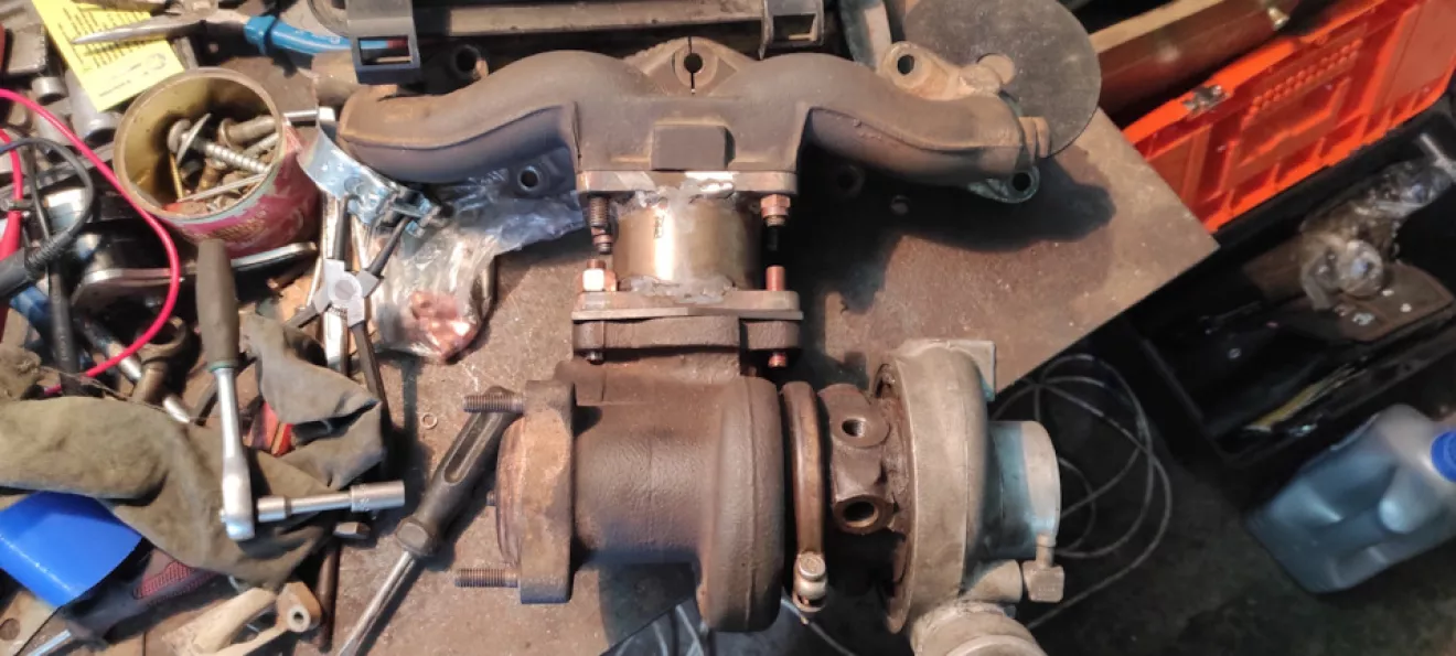 Прикупил, наконец-то, все сайленты в ходовку, ну и мой колхоз, связанный с тем, что я купил турбину, которая и подходит и нет :) Турбина оказалась с 900-го(спасибо max-812 за подсказку), соответственно она не подходит из-за того, что и на коллекторе и на турбе шпильки, пришлось городить вот этот огород