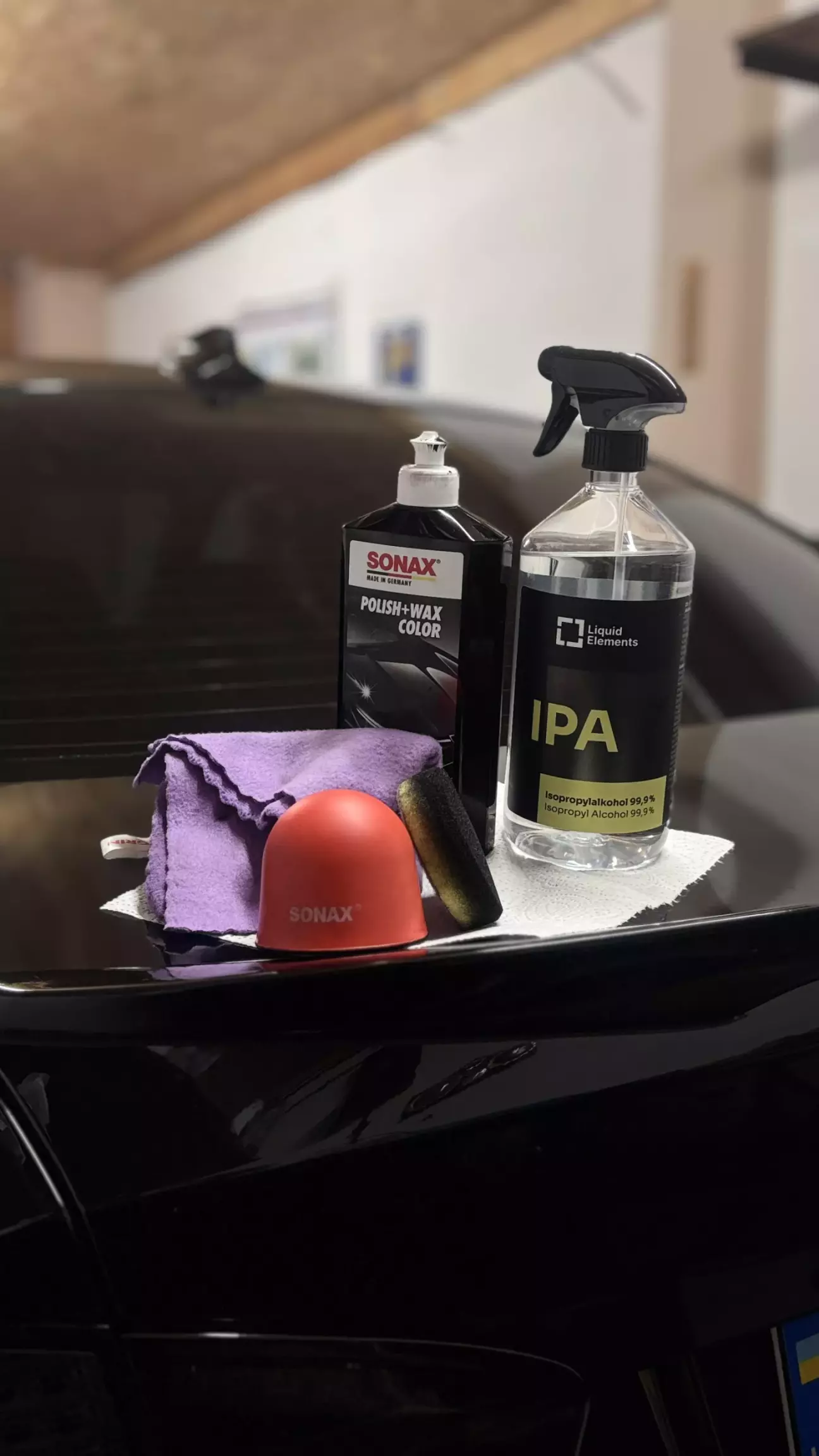 На сьогоднішній день вдалось покращити стан капоту, кришки багажника та передній крил. Крила справді блистять, кришка багажника також радує своїм виглядом, а ось капот напевно вже потрібно дійсно полірувальною машинкою рятувати. Не можу сказати, що він не покращив свій зовнішній вигляд, але виглядає уж точно не настільки матовим, як до застосування поліровки.