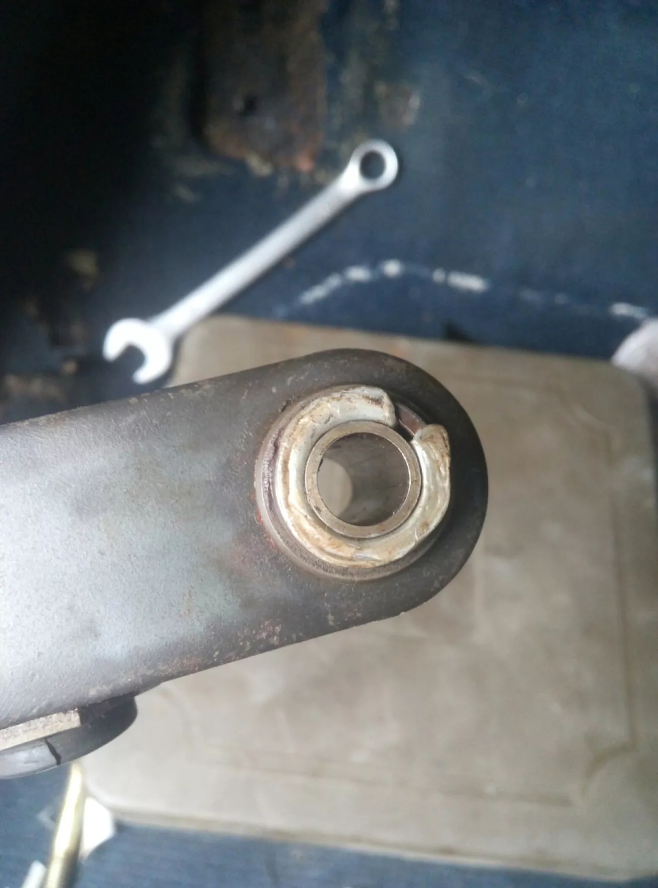 Когда снял педаль и увидел причину скрипта решил изготовить пластиковую втулку самостоятельно, для этого сначала изпоганил крышку от баллона со смазкой, но оказалось, что пластик сильно толстый и втулка не входит, потом решил уничтожить банку из под АТФ, и почти угадал с толщиной. Получилась втулка толще, чем экземпляр более целой, при этом цилиндр входил в педаль нормально, и я решил изготовить вторую втулку по образу и подобию. Для этого вырезал полоски из пластика, с крутил в трубочку и вставил в отверстие в педали, потом засунул цилиндр и немного выпер пластик наружу, далее зажигадкой подогрел края пластика и воспользовался ножом, как шпателем, что бы развернуть края, процедуру повторил с другой стороны. Перед окончательной сборкой всё смазал смазкой для шрусов, типа литола (Very Lube) и поставил на место. Педаль теперь не скрипит, ход очень мягкий, люфт педали стал гораздо меньше. Может позже закажу ремкомплект. А теперь отступление.