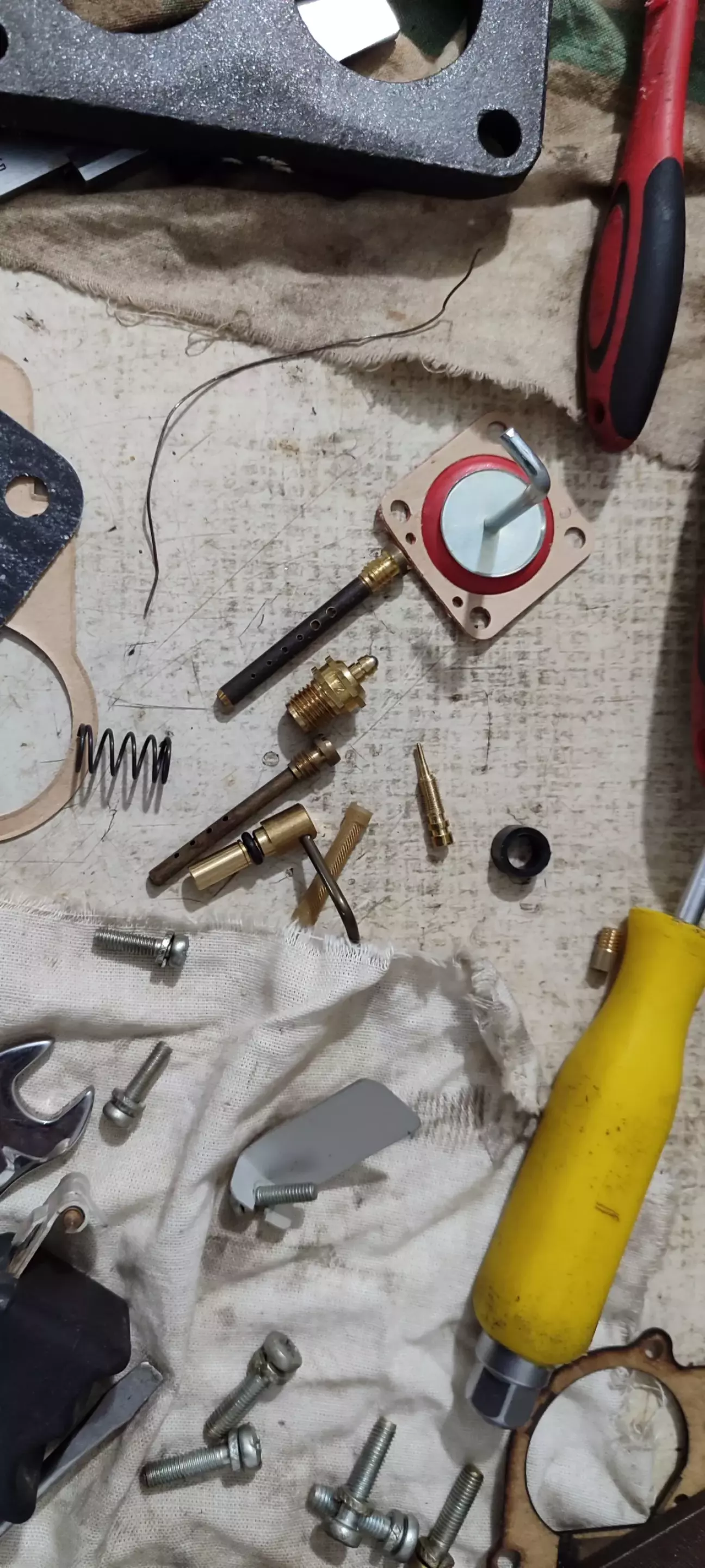 Розібравши карб, виявилося що мембрана прискорювального насосу вся в тріщинах, шукати таку як виявилося безкорисно. Тому я вирішив купити повний ремкомплект, з прокладками, жиклерами, резиночками, мембранами і тд.